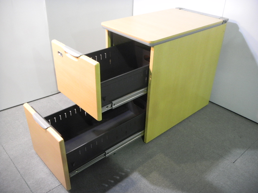 オカムラ(okamura)製の木目調2段ワゴンです。