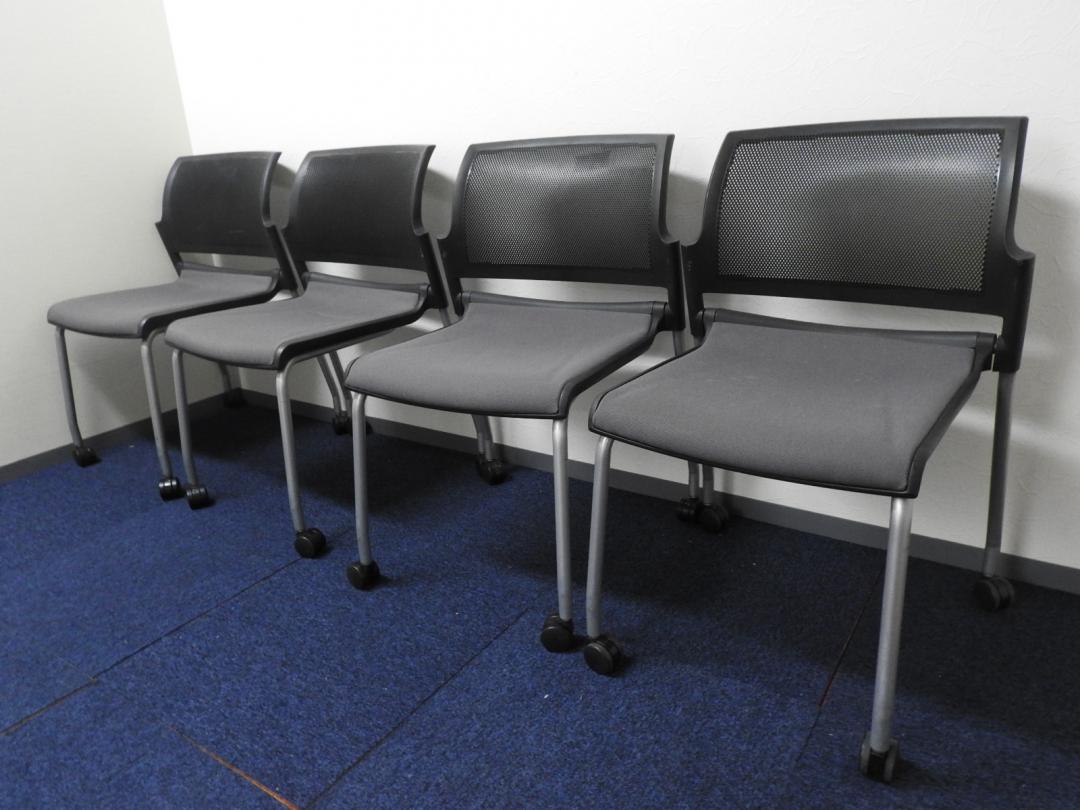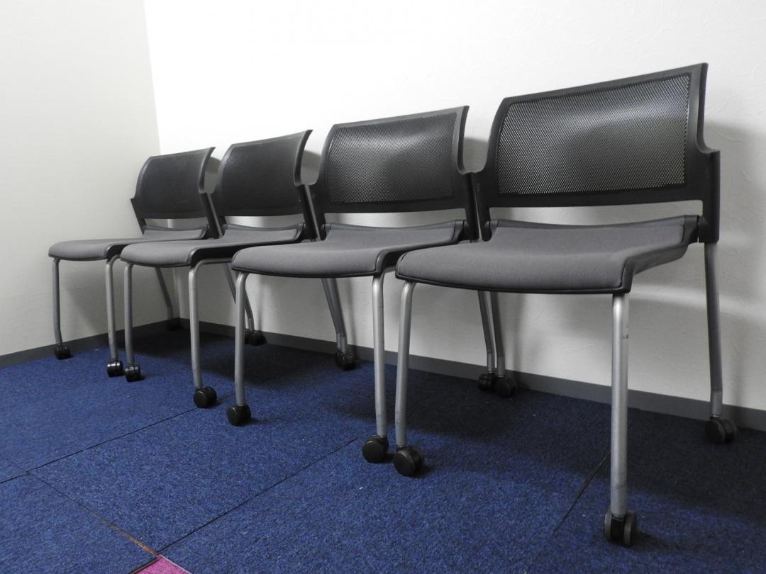 【可動式・チェアが軽いので機動性抜群】【セットで10%off -1200円】【移動式で隣とコミュニケーションを取りやすく】 ウチダ(UCHIDA)製 キャスター付き スタックチェア4脚セット【RP】- 品川・三田店