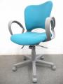 【前傾姿勢でPCワークが出来る!】■プラス製・オーバルチェア ■グリーン・肘付タイプ【ラスト1点・歳末特価セール品!】- 在庫数