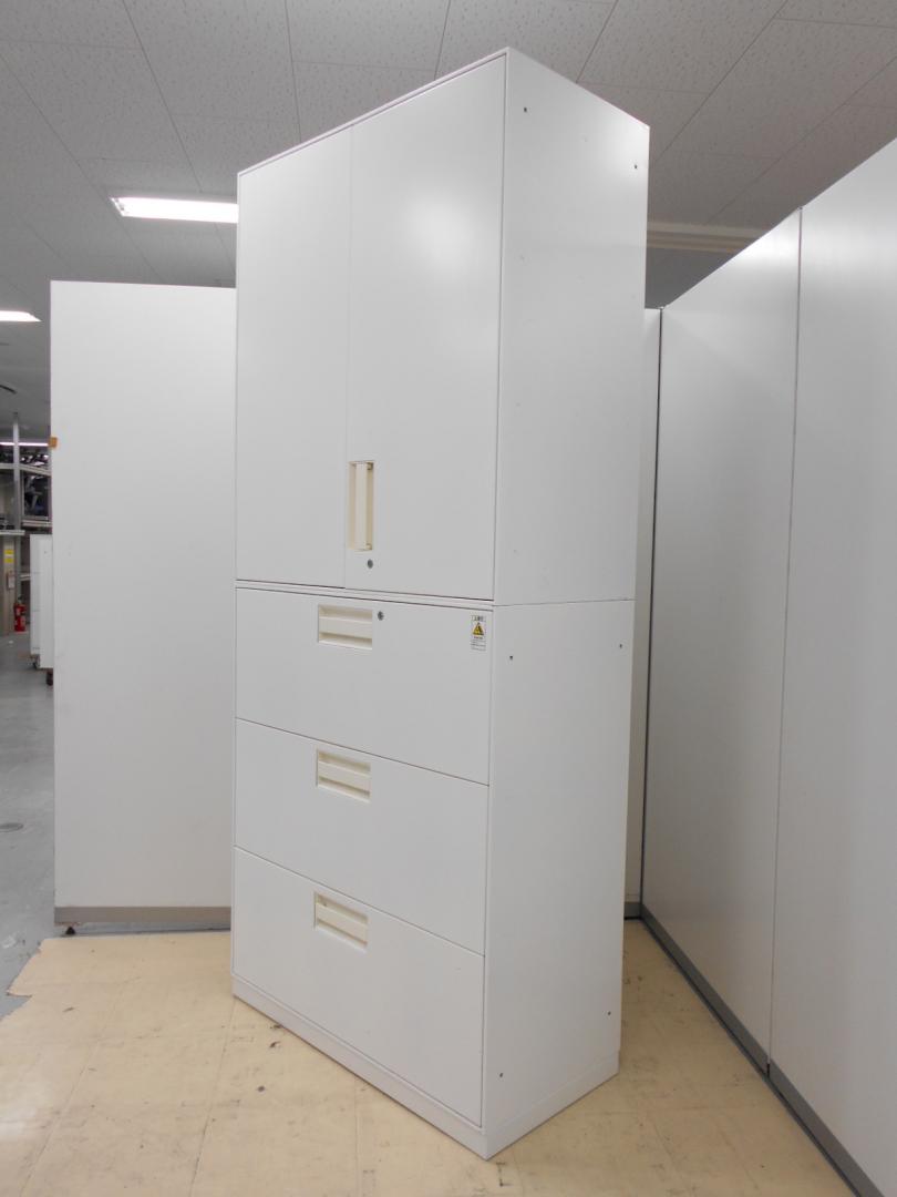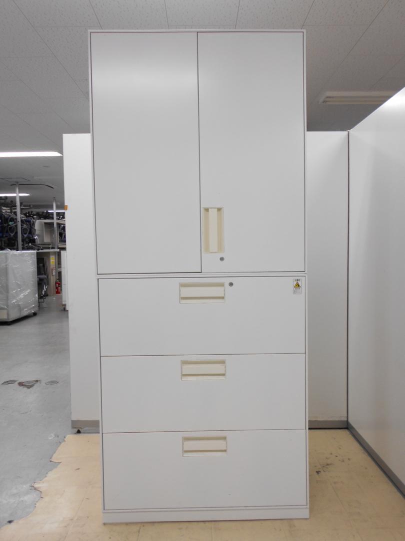 コクヨ製ユニフレックスシリーズの3段ラテラル+両開き書庫セットです。