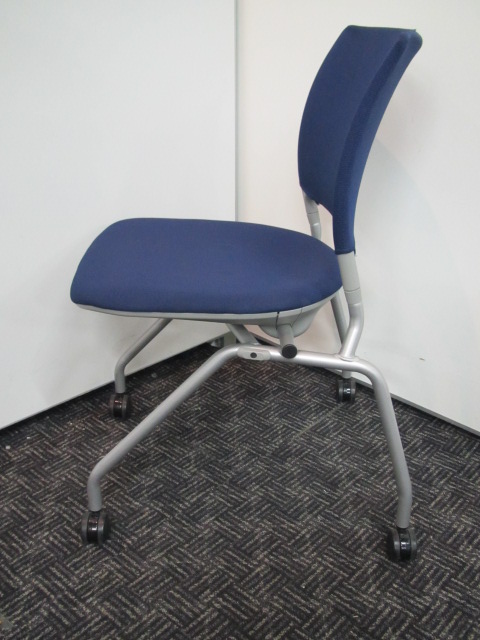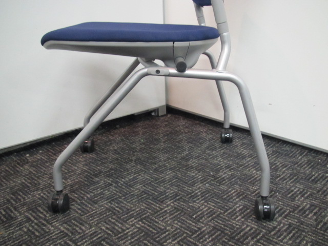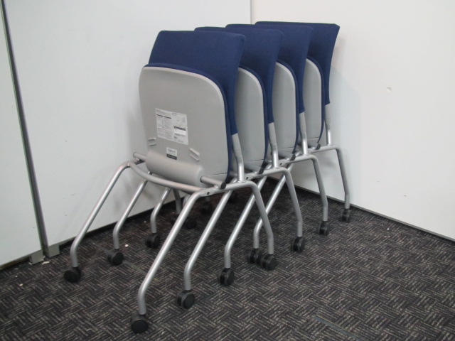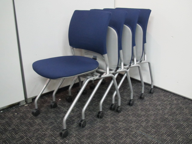 【状態良好】横に重ねることが出来るキャスター付きのミーティングチェア入荷!座面もたためるので綺麗に収納可能!【スタックチェア】- 在庫数