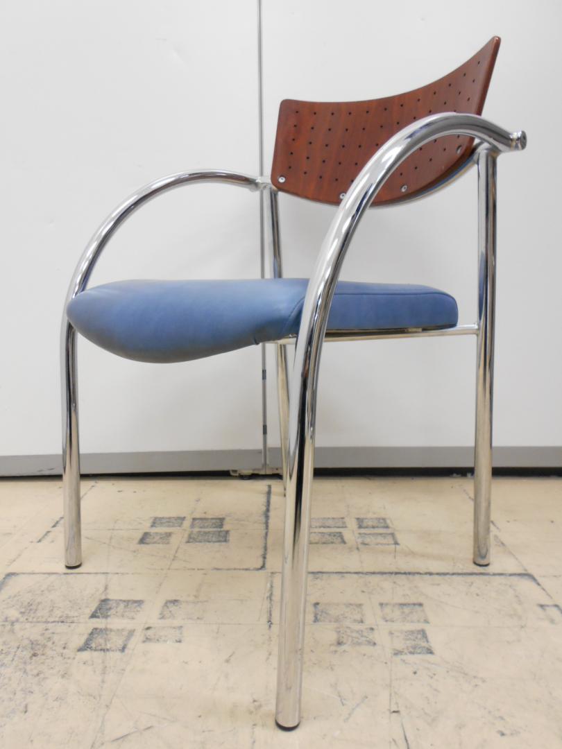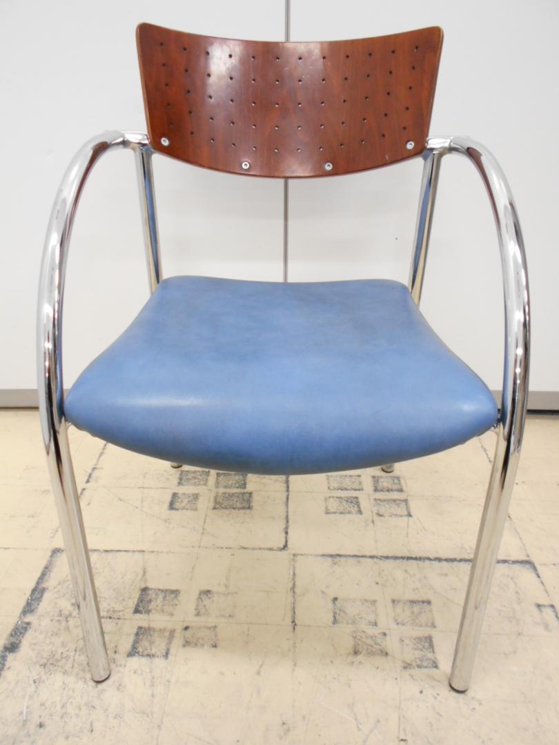 木の背当てと鮮やかなブルーの合皮がオシャレなスタッキングチェアが入荷しました。- なんば日本橋店