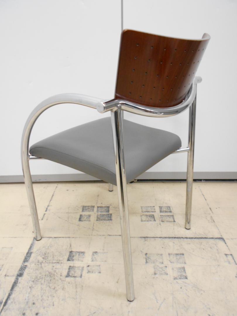 木製背当て、エンボス加工合皮製座面のスタッキングチェアです。