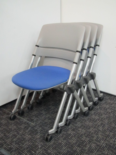 【限定4脚!】使わない時は重ねて収納■定番のブルーでどんなオフィスにもマッチ■ミーティングスペース、休憩室にいかがでしょうか- 在庫数