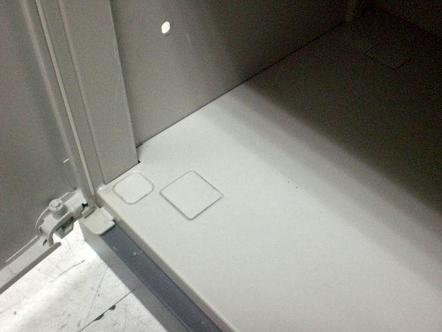 - 一部不具合ありそ引出の開閉不可、施錠不可、棚板無しといったの書庫の本来の効用を果たすための機能以外の一部が使用不可(例、扉、引出の開閉がしづらいなどがある。 )