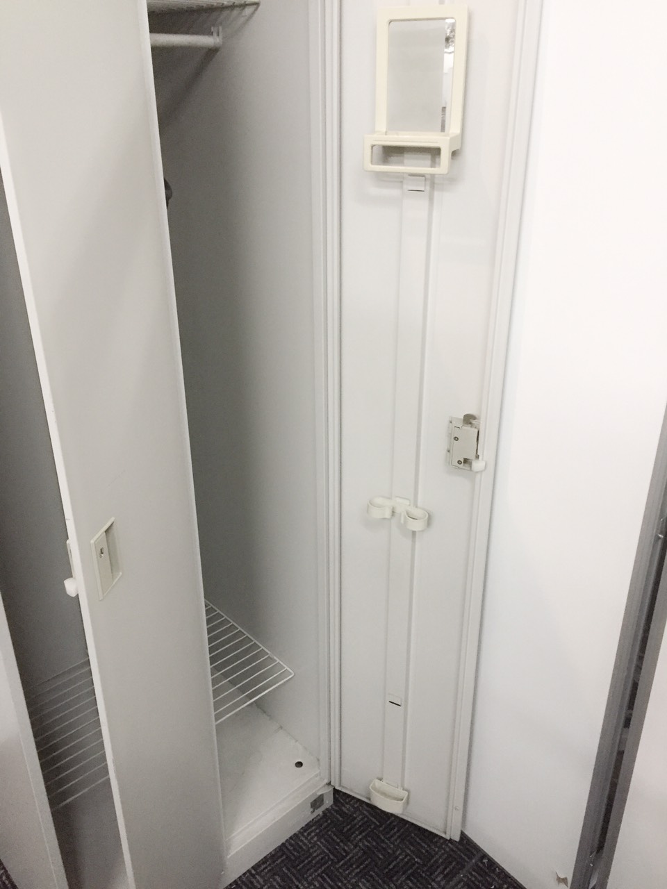 - 完備鏡、ネクタイ掛け、傘立て、網棚、フック等が全て完備されている。