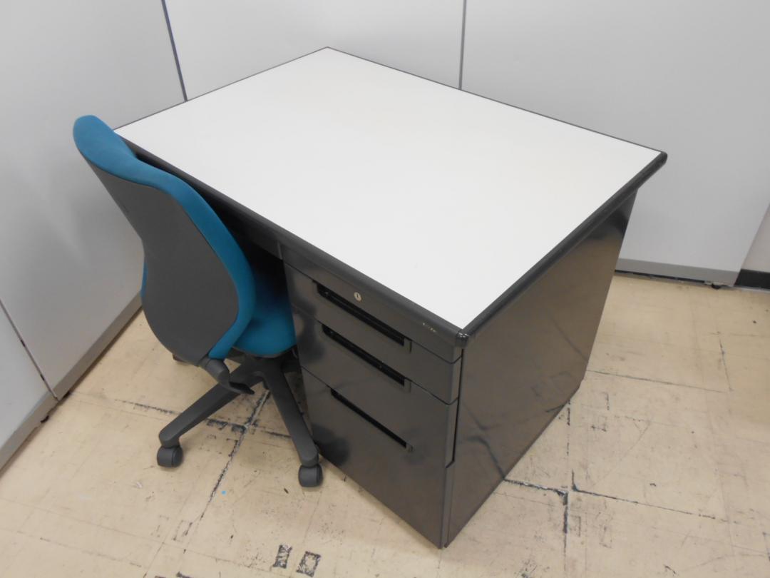 ブラックカラーのオカムラ製DBシリーズ片袖机にコクヨ製セディスタチェアをセットにしました。