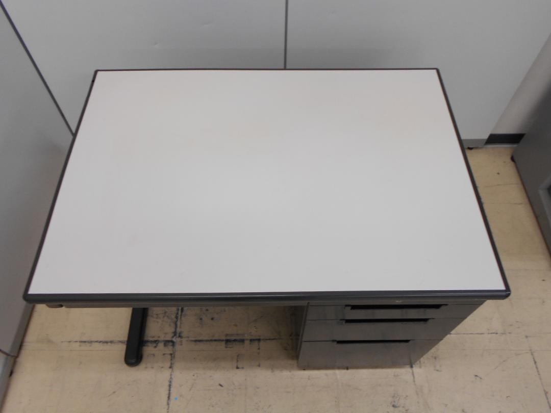 モノトーンカラーのデスクに快適クッション座面のチェアをセットにしました。オカムラ製DB片袖机+コクヨ製セディスタチェア- なんば日本橋店