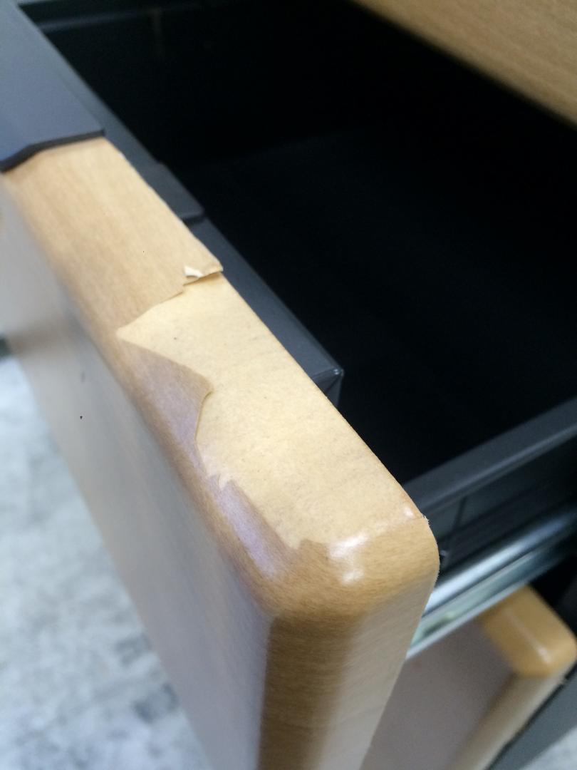 - 一部不具合ありその脇机・ワゴンの本来の効用を果たすための機能以外の一部が使用不可な状態。(例、引出が開閉しづらい、 キャスターロック機能使用不可、ラッチ不良 等がある。)