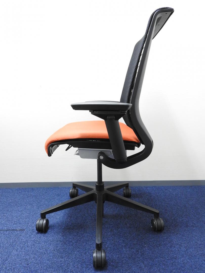 快適な座り心地に不可欠な調節機能である、上下昇降、座面の奥行き調整、リクライニングなどを備えており、操作もわかりやすく好評です。 特に、座面の奥行きは、座面下の左右に通った細いバーで調整でき、座ったままで軽やかに滑るように調整が可能です。 価格面では、新品では高めですが、中古は流通も多く、定価の3割前後の価格で高級チェアの座り心地を手に入れることができます!