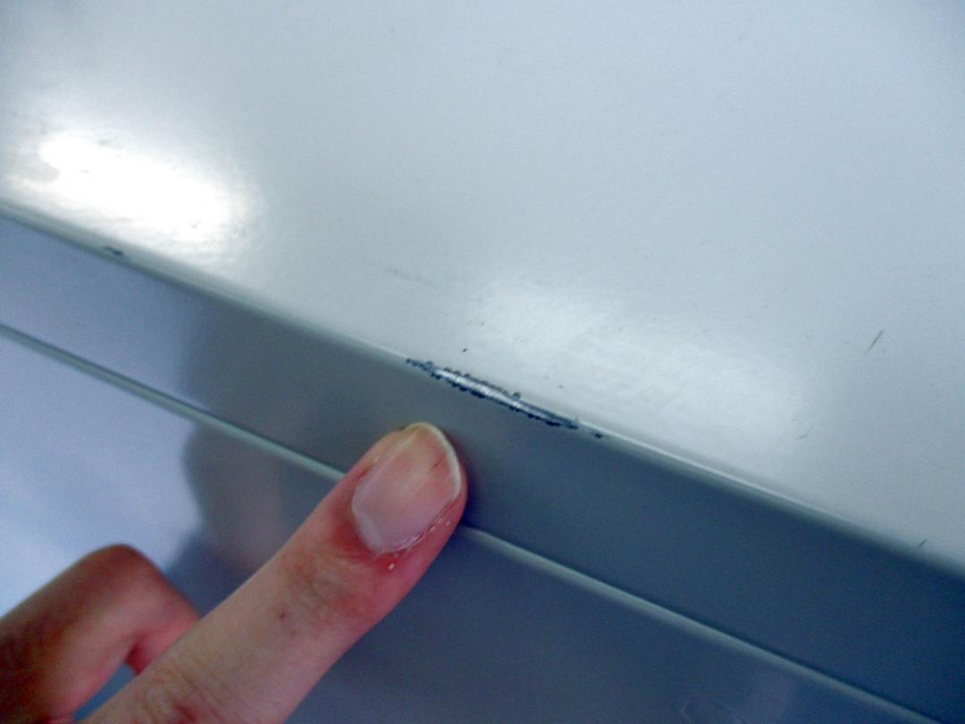 - あり黄ばみ・変色が広い範囲にうっすらある、または濃い黄ばみ・変色が一部ある。(例、天板、正面、背部、サイド部分にある。)