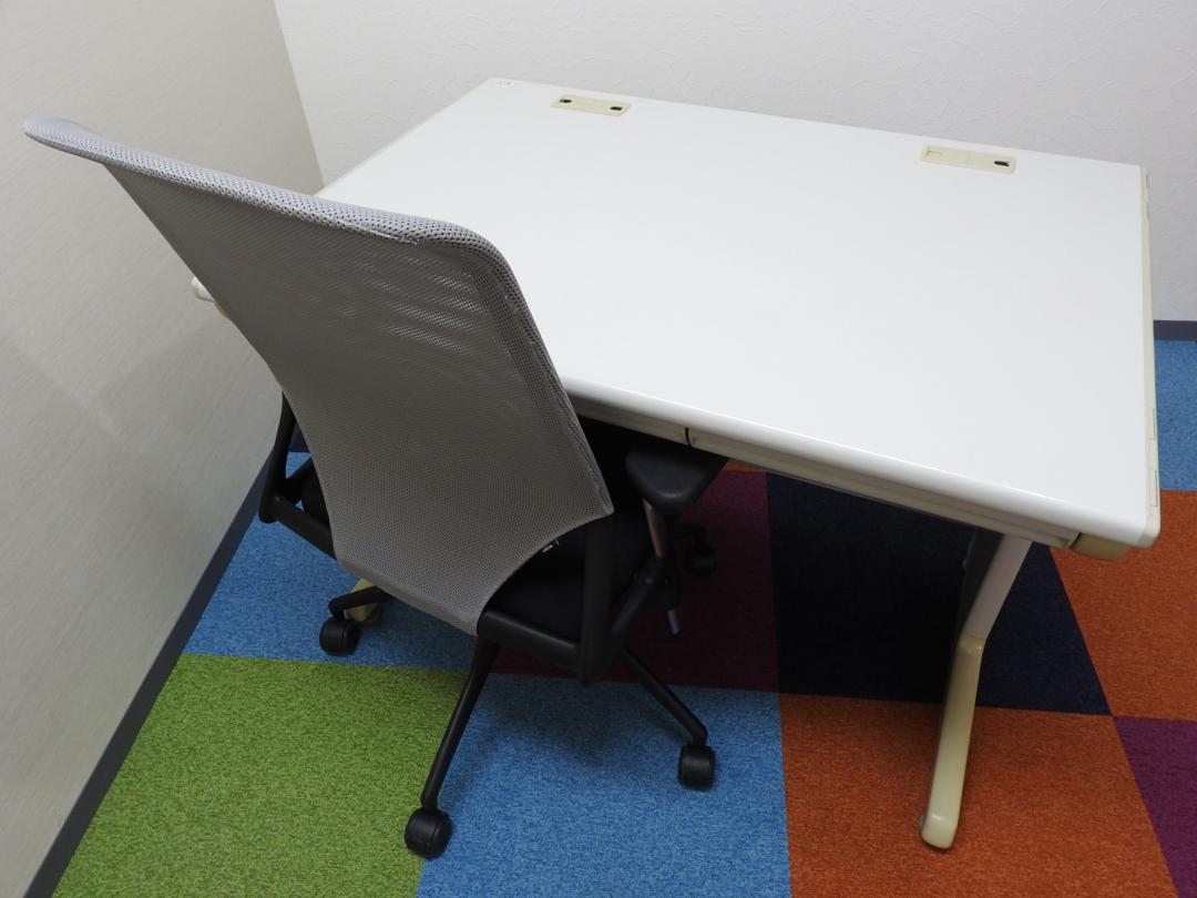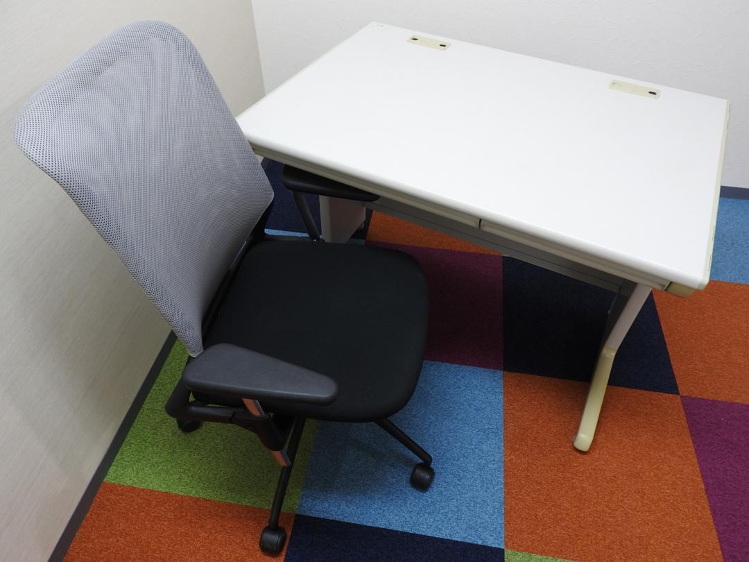 チェアはデスクの上や中に入れて保管しております。もちろん試座も可能ですので、お気軽にお申し付けください!