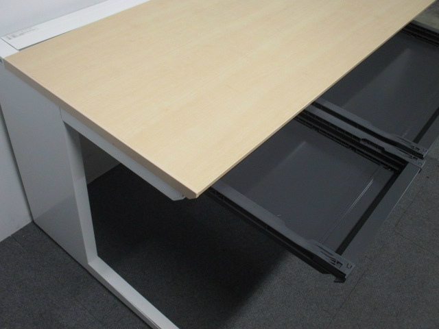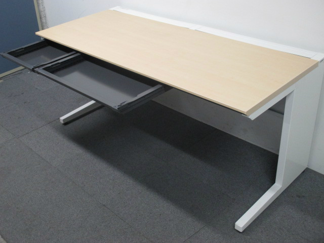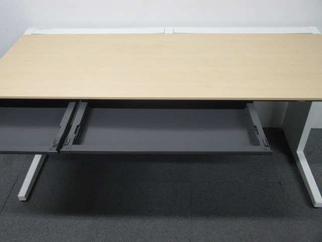 【8台入荷!状態良好】iSデスクシステム ワークスペース広い幅1600mm 平デスク ナチュラル天板タイプ センターと左引出付きで収納力も抜群!【中古事務机 オフィス家具】【ロット】- 川崎店