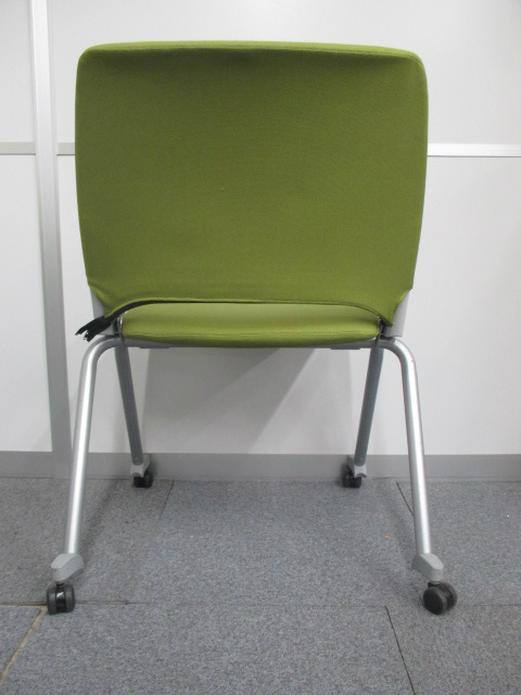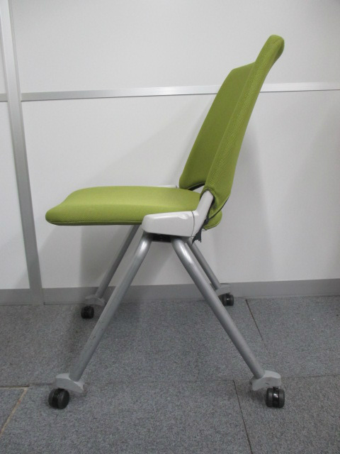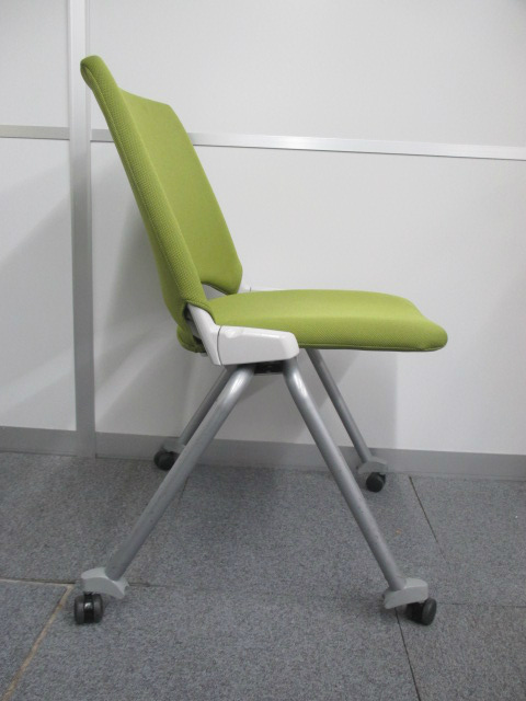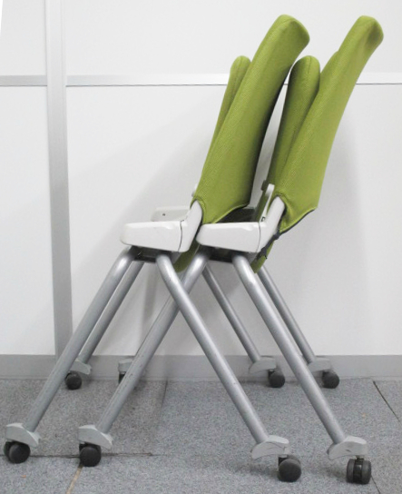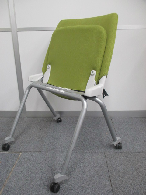 【2脚入荷!】水平に重ねることができる キャスター付きミーティングチェア リーフグリーンカラー【中古会議用チェア ネスティングチェア】- 川崎店