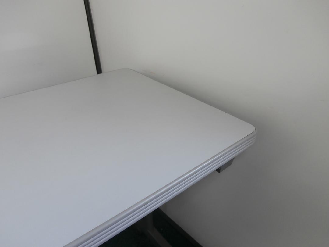 - 一部不具合あり天板歪み、アジャスター無し、キャスター使用不可ようなそのテーブルの本来の効用を果たすための機能以外の一部が使用不可な状態。(例、キャスターロッ ク機能使用不可、棚板無し等がある。)