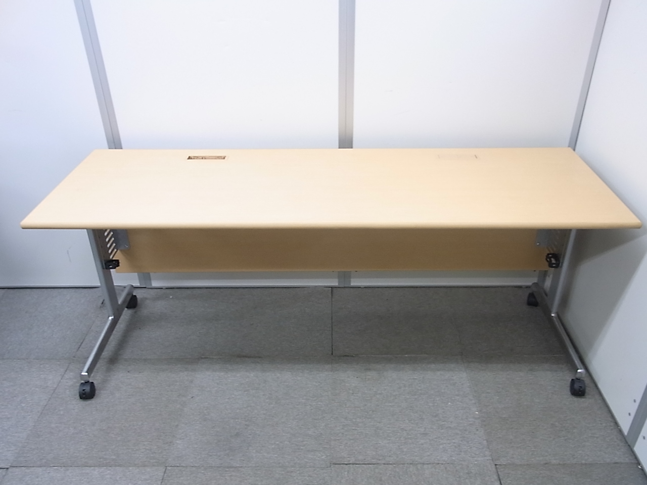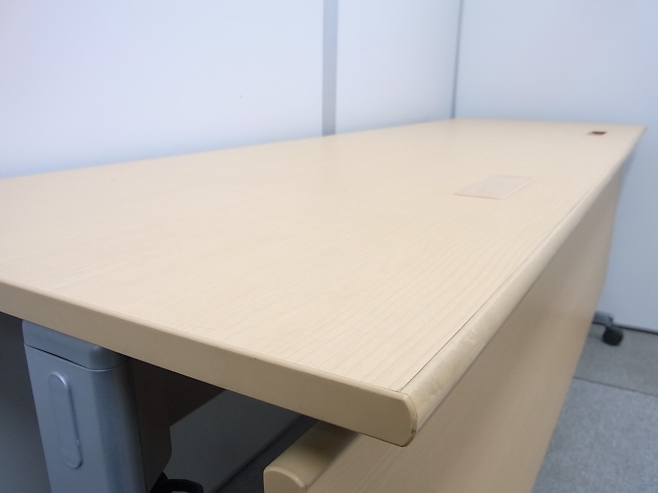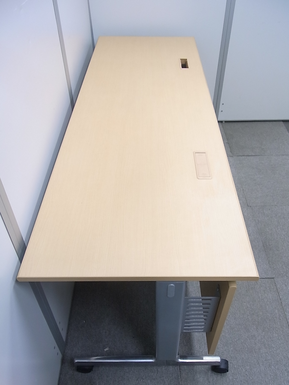 【1台限定価格!】ナチュラル天板が綺麗な作業台兼テーブル!配線タップカバー一部無し 天板折りたたみ不可【おつとめ品】- 在庫数