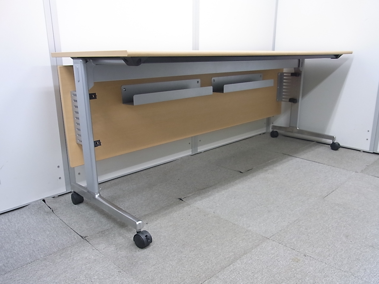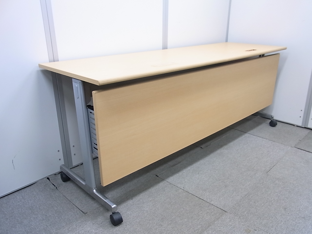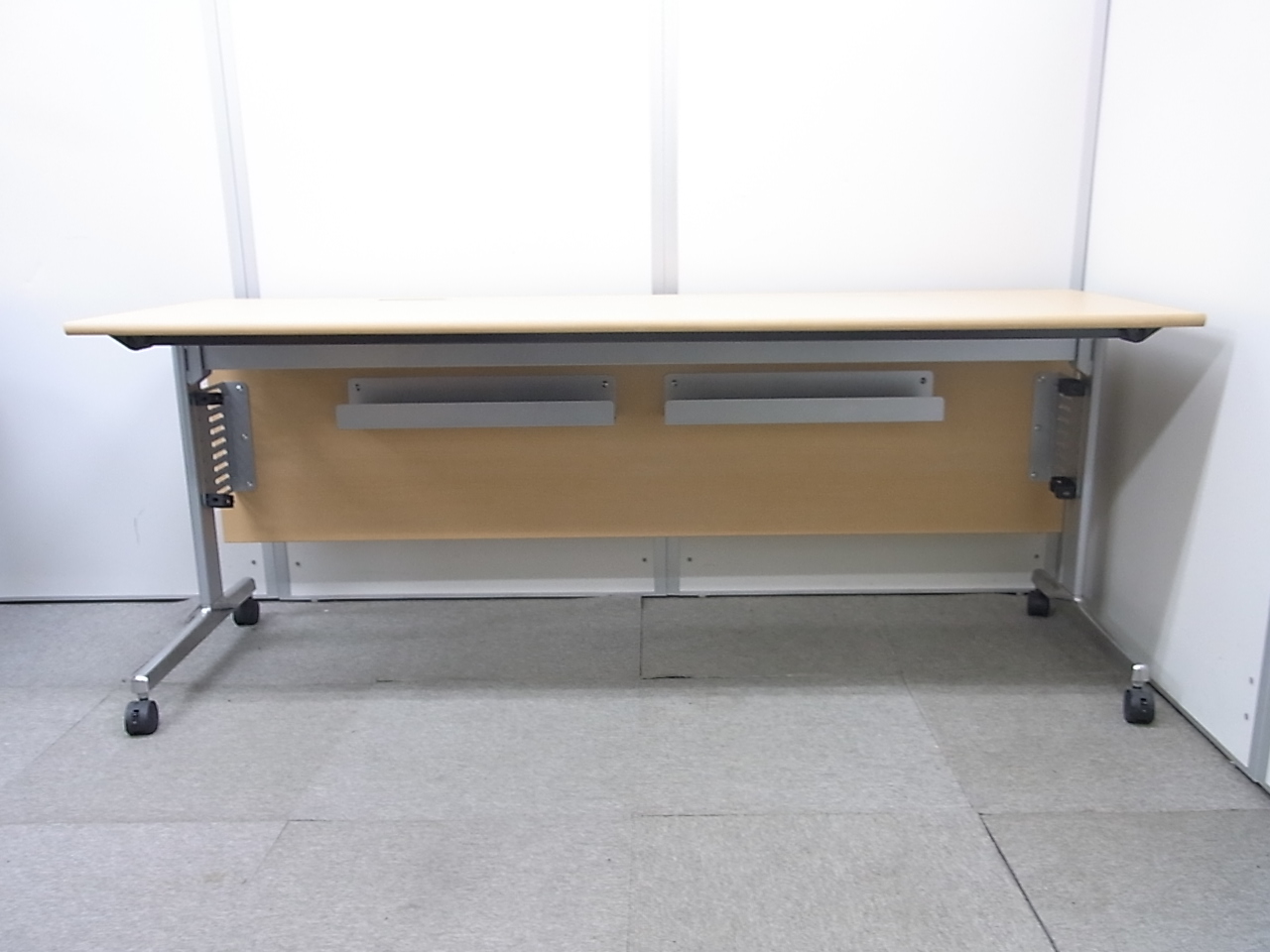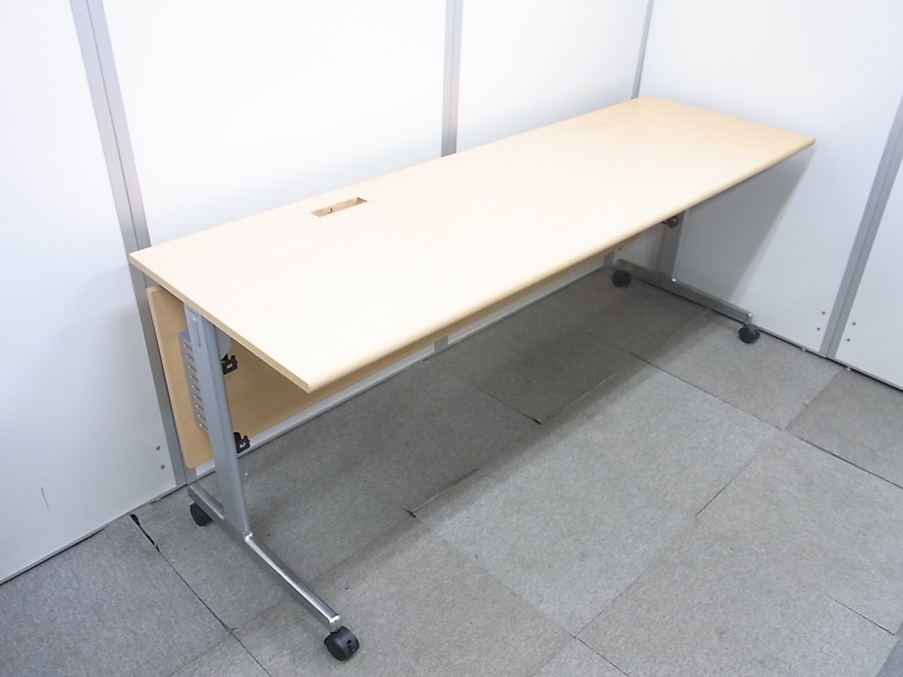 【1台限定価格!】ナチュラル天板が綺麗な作業台兼テーブル!配線タップカバー一部無し 天板折りたたみ不可【おつとめ品】- 在庫数