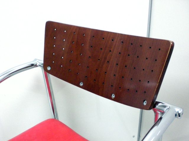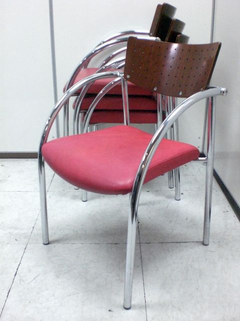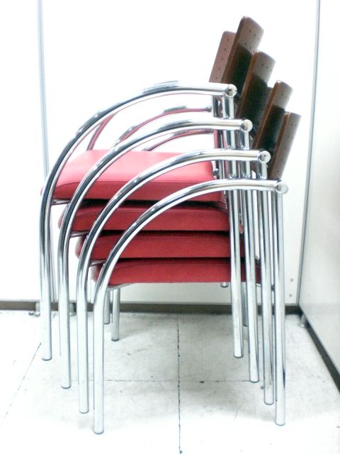 【4台入荷】鮮やかレッドがまぶしいチェア 重ねられます 状態良好- 京都東寺店