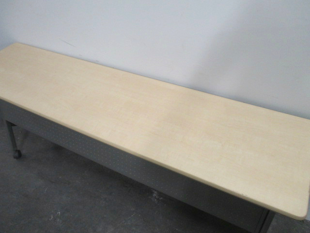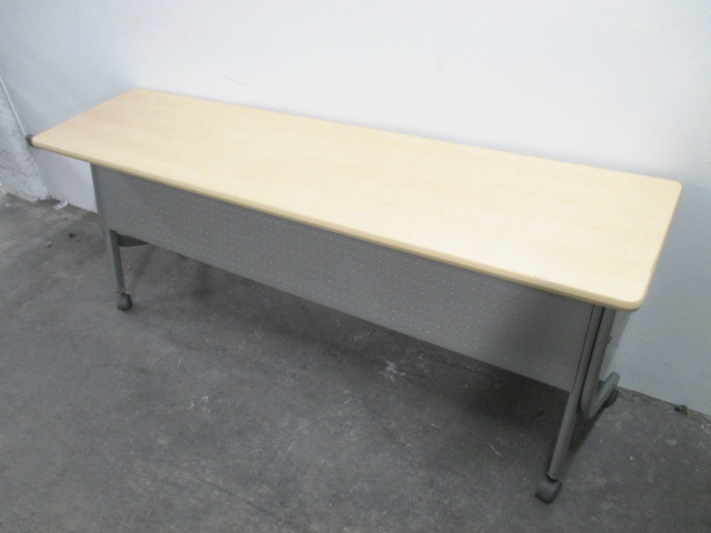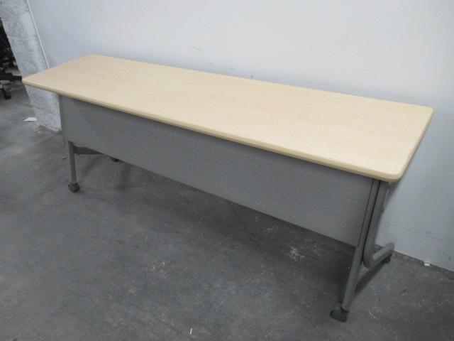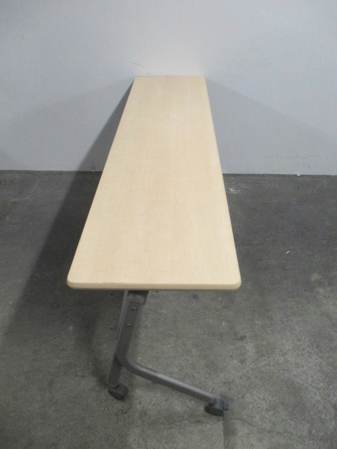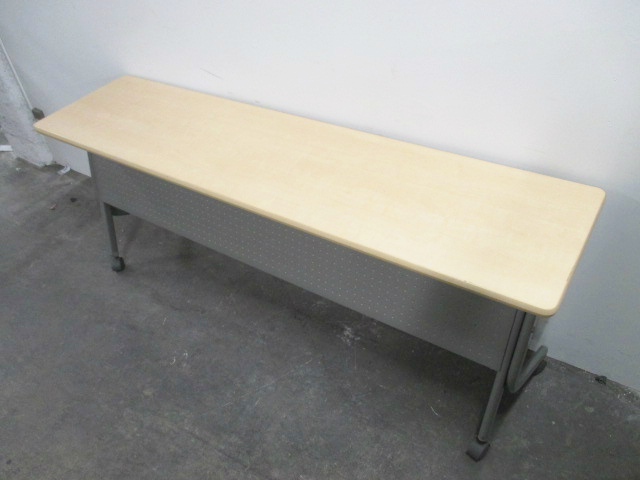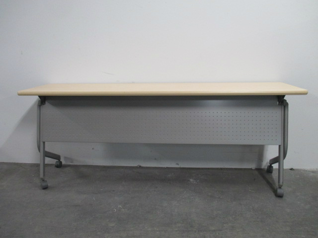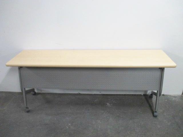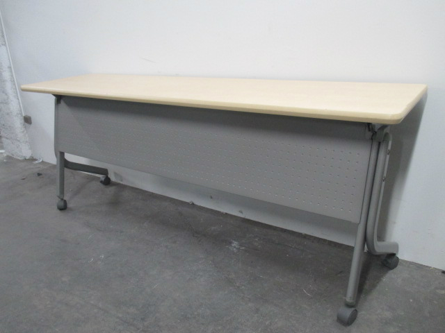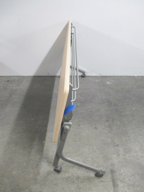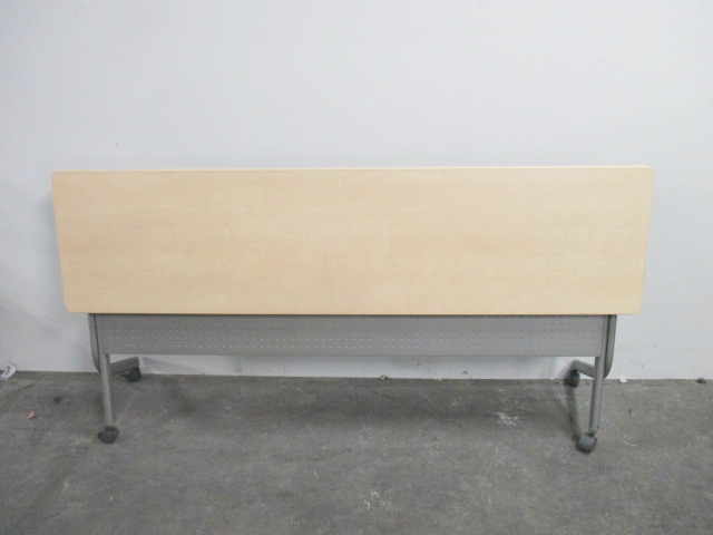 【2台入荷!状態良好】天板を折りたたんで平行スタック可能な会議用テーブル リマインドメープルカラー 幅1800 奥行450【中古ミーティングテーブル】- 川崎店