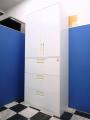 ホワイトの扉面と温かみのあるイエローの取っ手が、オフィスを