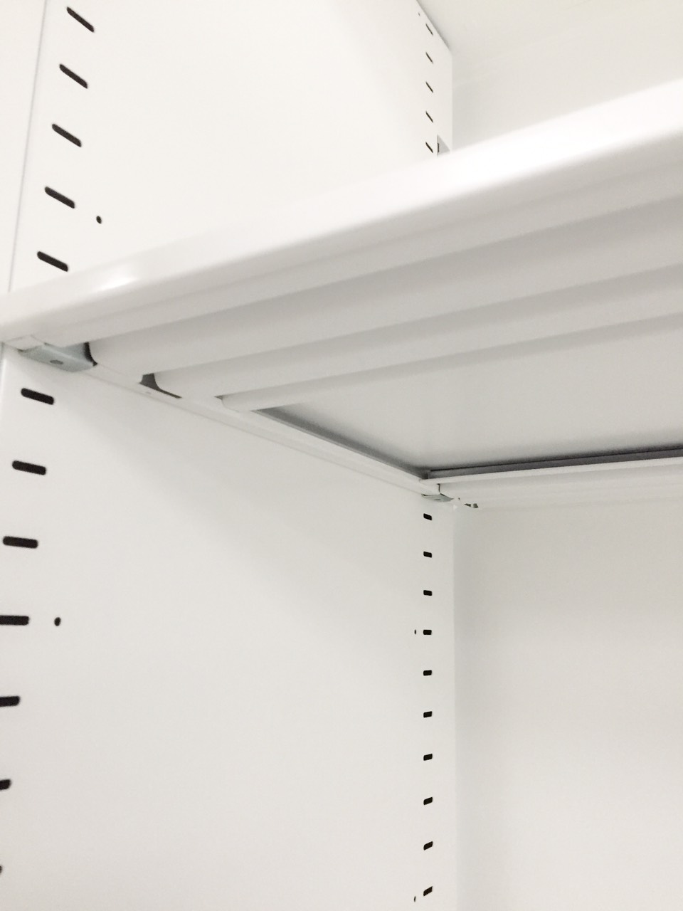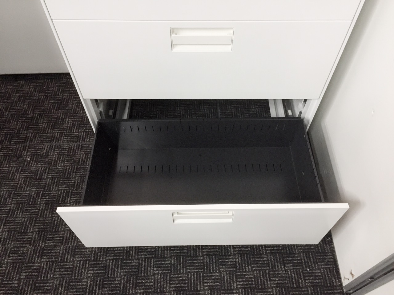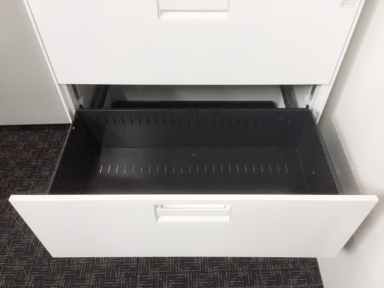 3段ラテラル書庫は、書類をパンパンに入れて重くてもスムーズに開閉します。