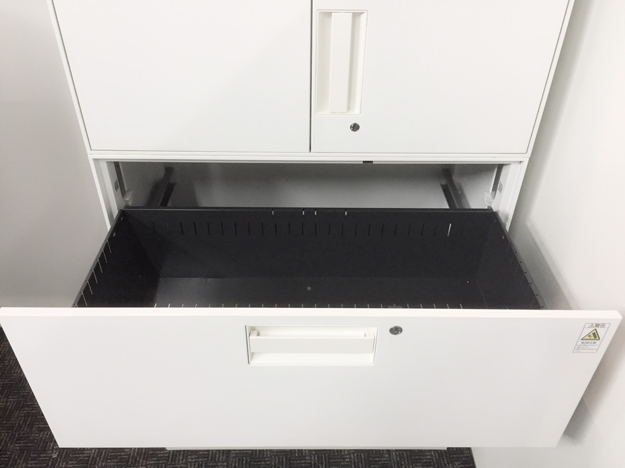 - 一部不具合ありそ引出の開閉不可、施錠不可、棚板無しといったの書庫の本来の効用を果たすための機能以外の一部が使用不可(例、扉、引出の開閉がしづらいなどがある。 )