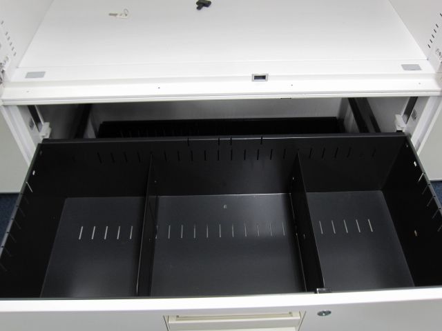 - 一部不具合ありそ引出の開閉不可、施錠不可、棚板無しといったの書庫の本来の効用を果たすための機能以外の一部が使用不可(例、扉、引出の開閉がしづらいなどがある。 )