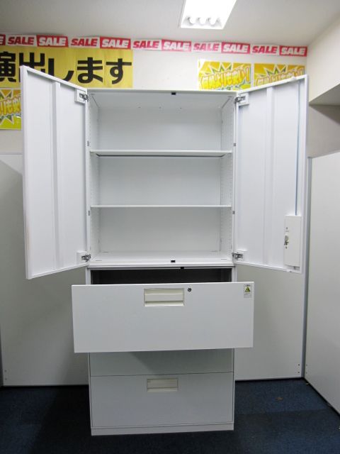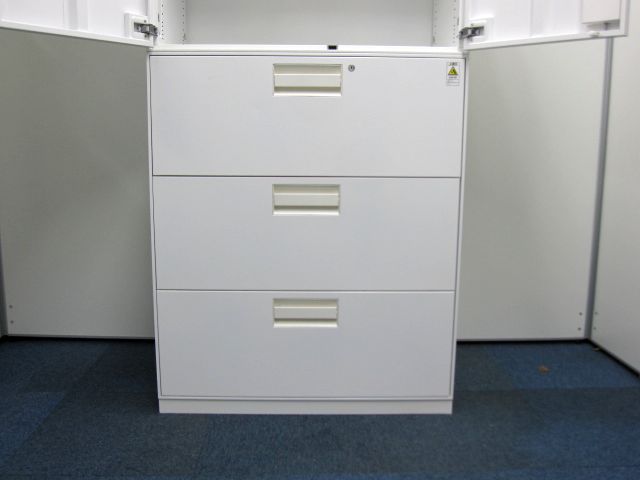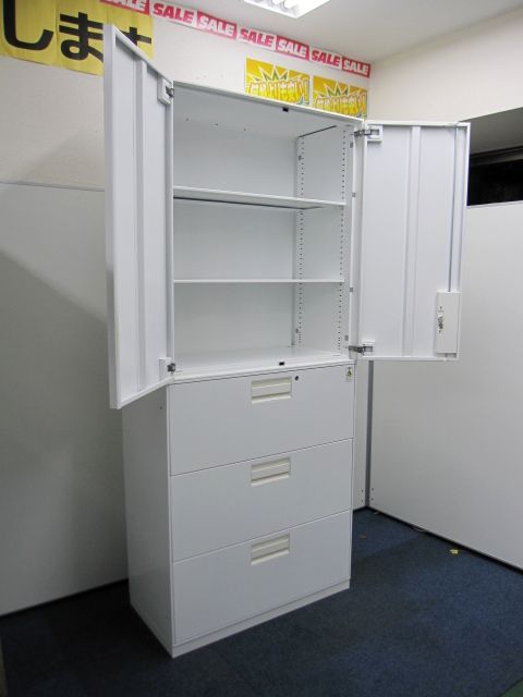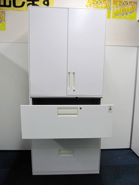 【希少な特注ホワイトカラー】ユニフレックス(特注仕様)両開き×3段ラテラル【在庫:残り1セット】- 品川・三田店