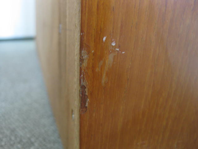 - かなり強い黄ばみ・変色が商品全体にある。(例、天板、正面、背部、サイド部分にある。)