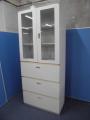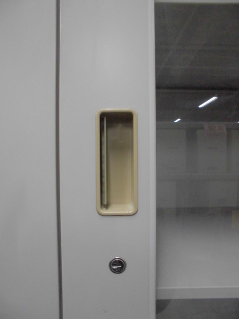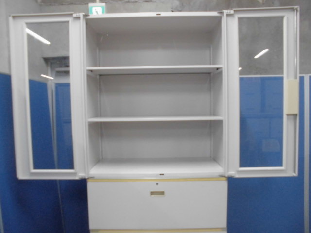 【イトーキ鉄板書庫】シンライン上下書庫セット|ガラス両開き(観音開き)+3段ラテラル【鍵付き】- 立川・八王子店