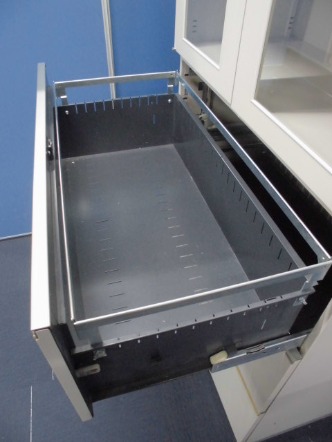 - 一部不具合ありそ引出の開閉不可、施錠不可、棚板無しといったの書庫の本来の効用を果たすための機能以外の一部が使用不可(例、扉、引出の開閉がしづらいなどがある。 )