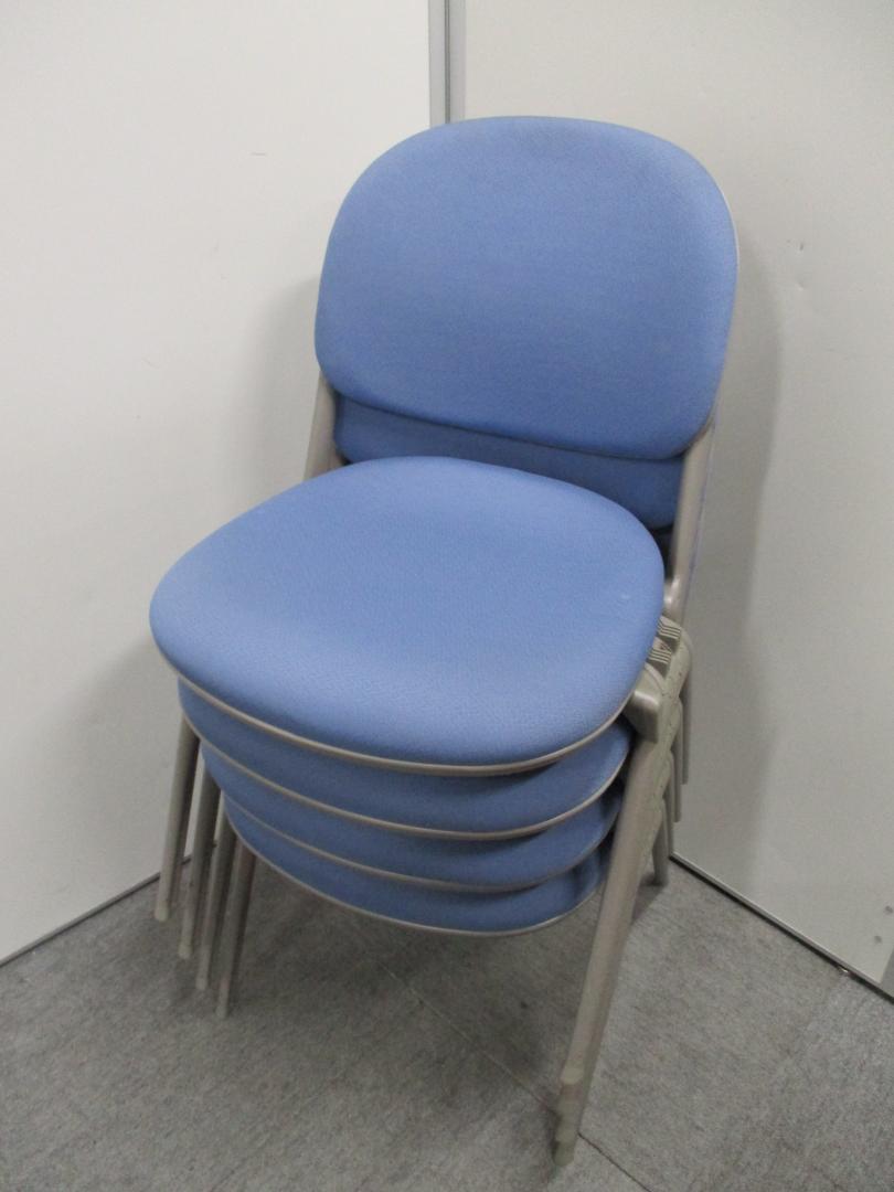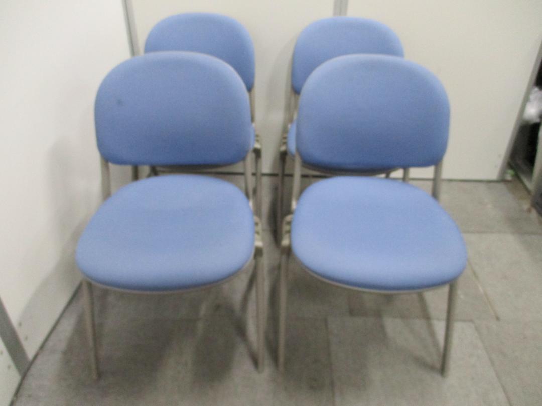 【4脚セット】シンプルなスタッキングチェア【ブルー】【急なミーティングにも対応可能!】- 在庫数