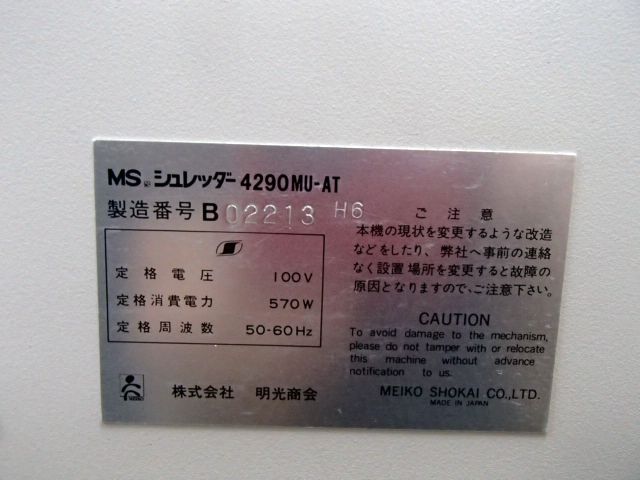 【中古】 MS-4290MU-AT 明光商会 シュレッダー 155185