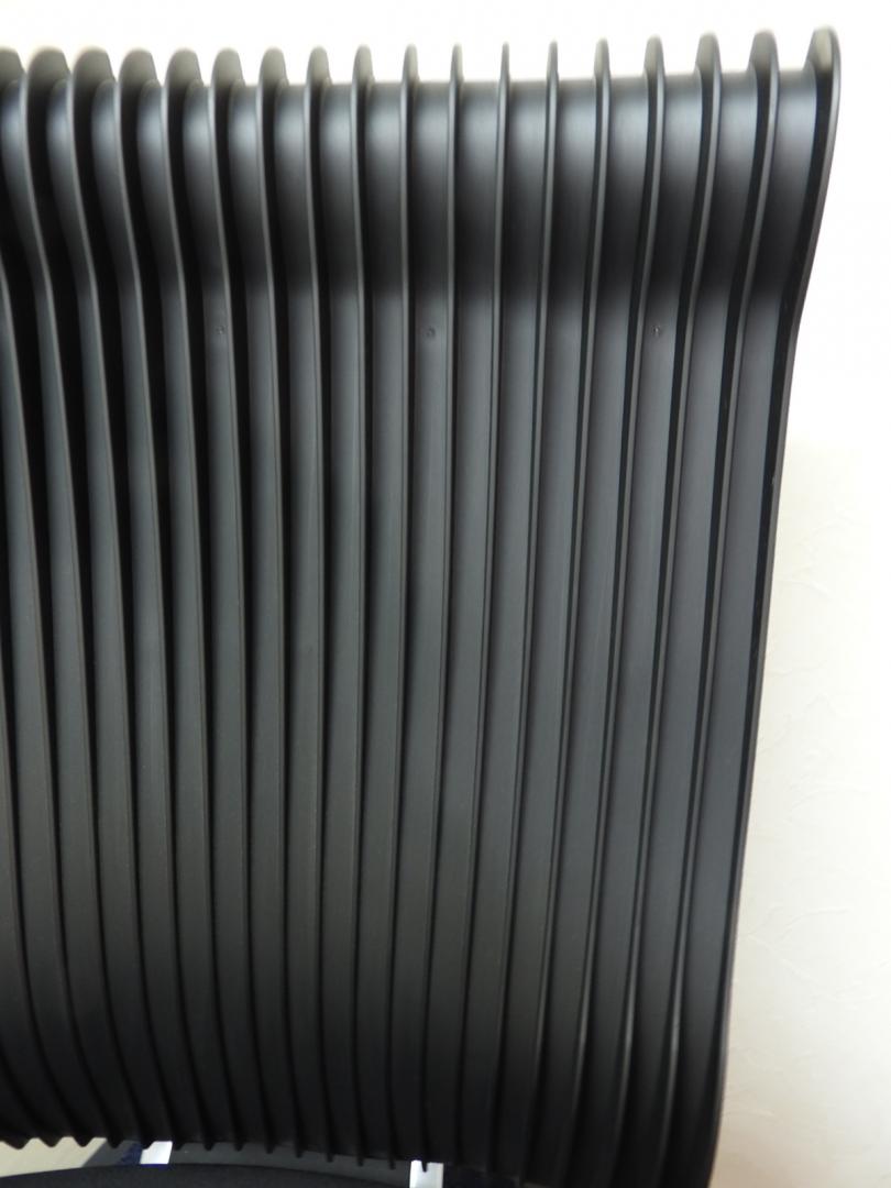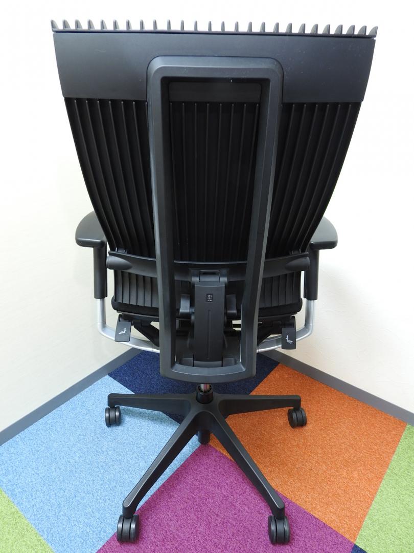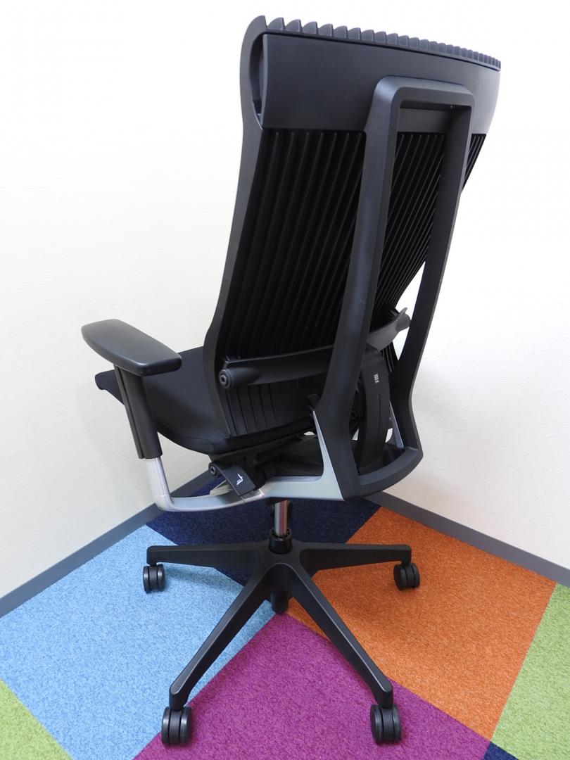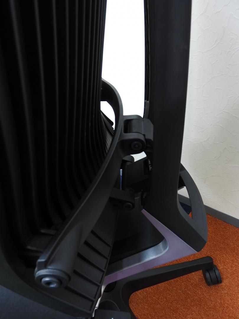 見た目は少し硬そうに見えるエラストマー素材ですが、座ってみると程よいしなり具合のやわらかな座り心地で、背中が痛くなるようなことはまるでありません。面ではなく線で支えることで、背面の通気性の良さは抜群です。