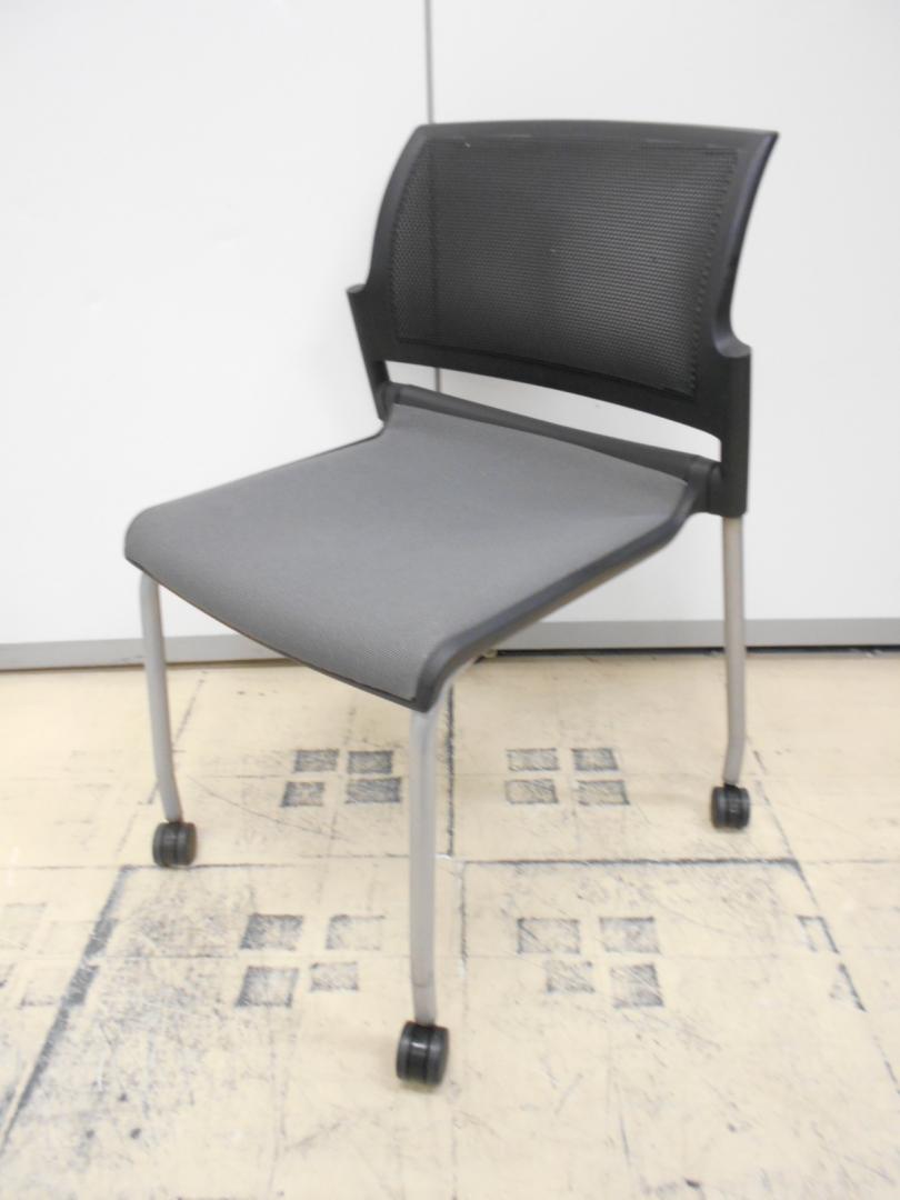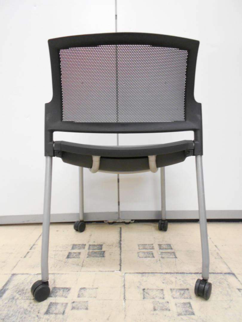 樹脂メッシュの背当てでしっかりとした造りのネスティングチェアです。 内田洋行製- なんば日本橋店