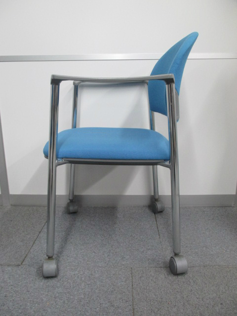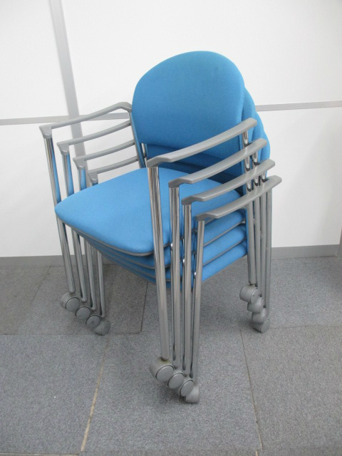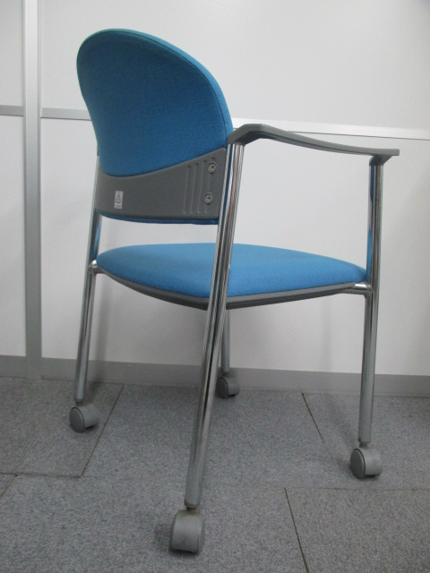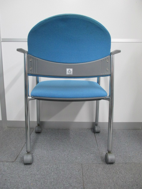 【キャスター付で移動がスムーズ!】■肘付スタッキングチェア ブルー■ライオン製(LION)ミーティングチェア- 川崎店
