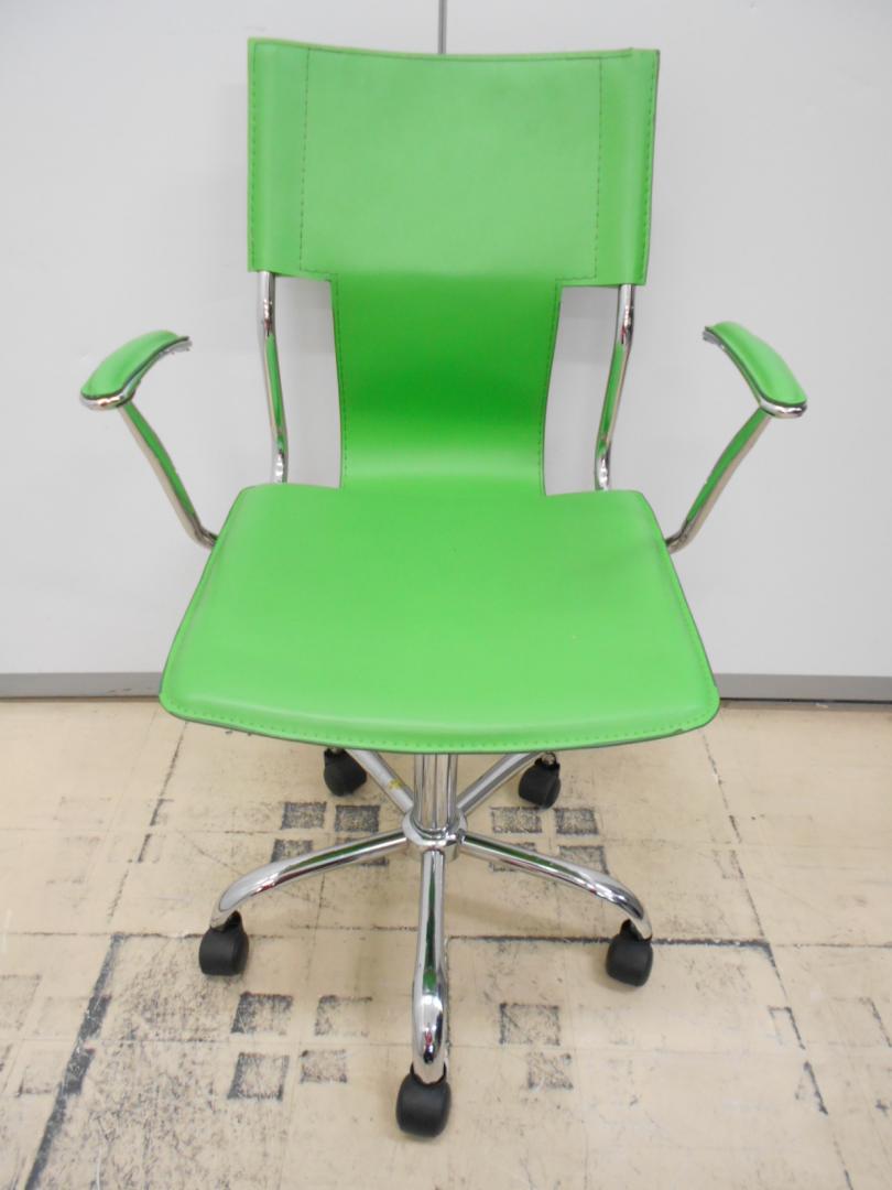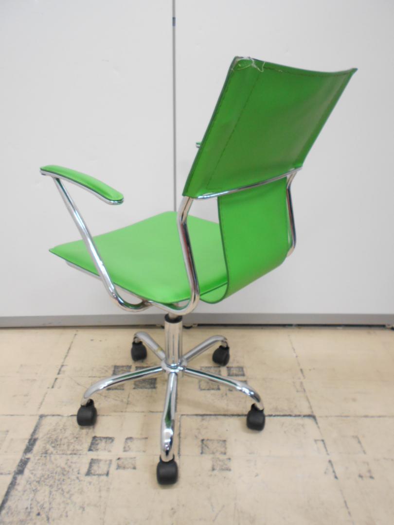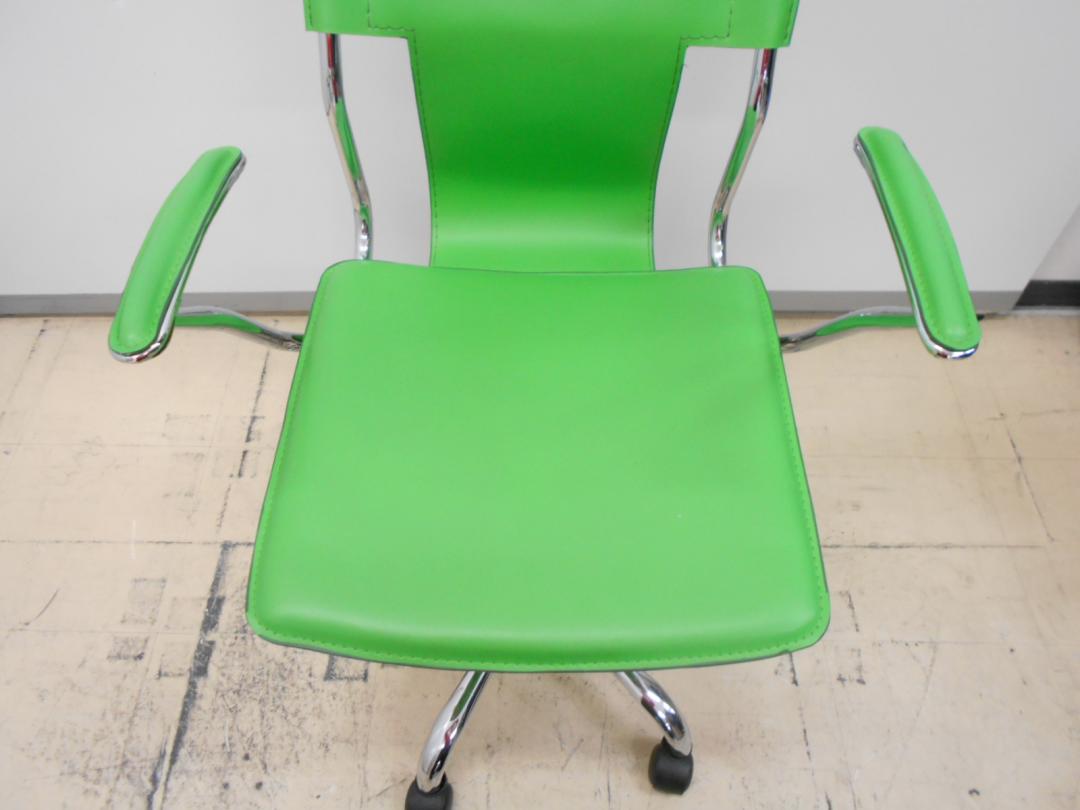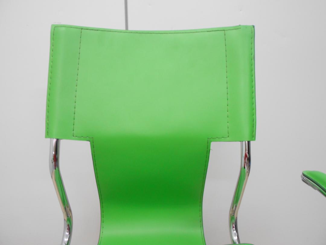 鮮やかなグリーンの合皮製ミーティングチェアです。