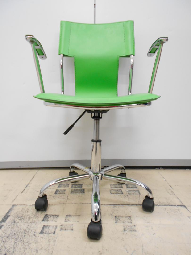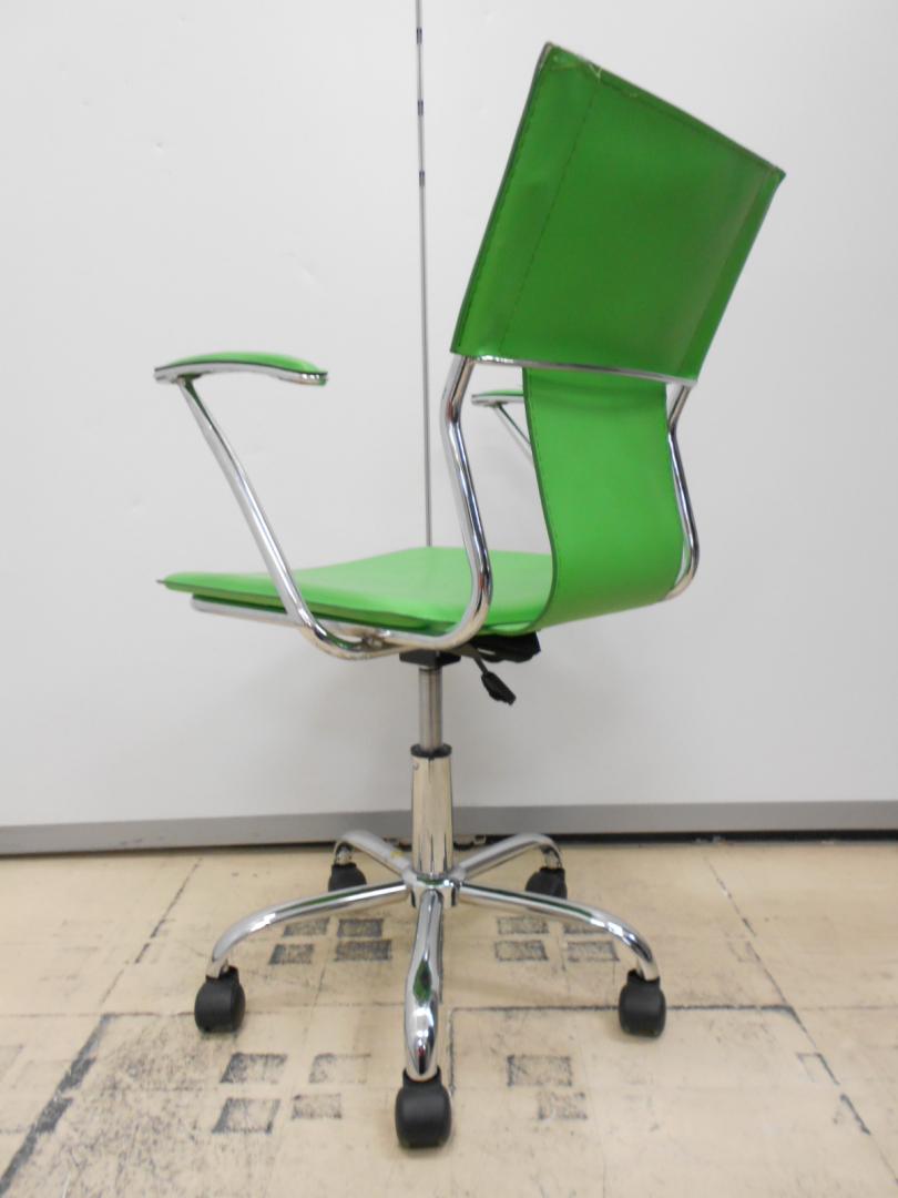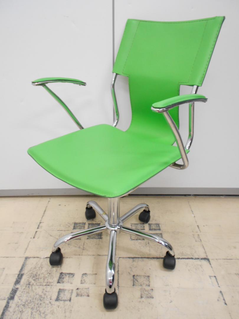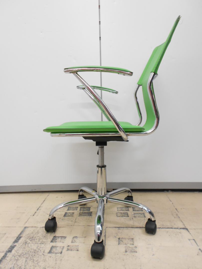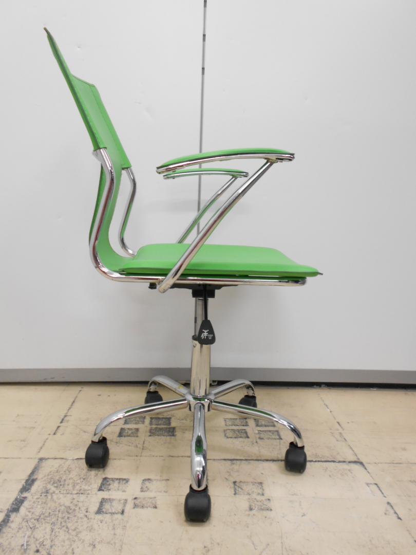 鮮やかなグリーンの合皮製ミーティングチェアです。