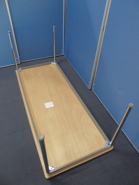 - 一部不具合あり天板歪み、アジャスター無し、キャスター使用不可ようなそのテーブルの本来の効用を果たすための機能以外の一部が使用不可な状態。(例、キャスターロッ ク機能使用不可、棚板無し等がある。)