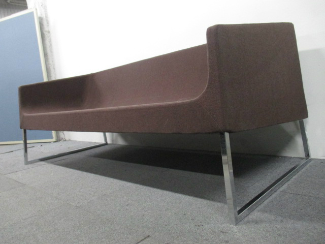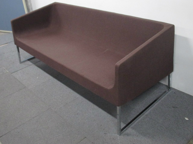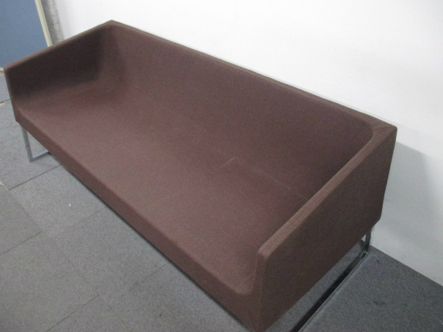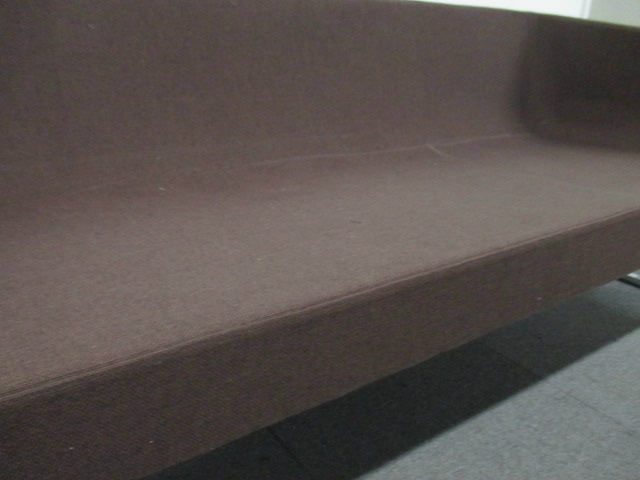 【生地全体日焼け】総合家具製 3人掛けソファー 軟質モールドウレタン使用ですわり心地抜群のデザインソファー 【中古オフィス家具 応接家具】- 川崎店