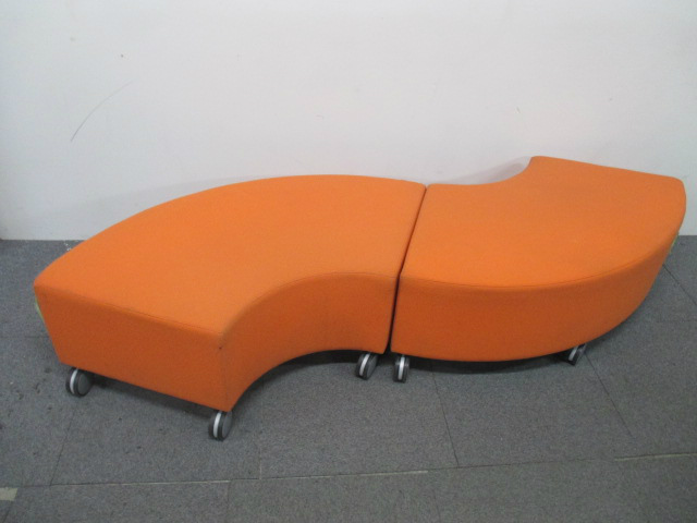 【3台入荷!状態良好】リングソファー 目的に応じた組み合わせでさまざまな使用が可能 キャスター付きで移動もラクチン マリンダオレンジカラー【中古オフィス家具 】- 川崎店