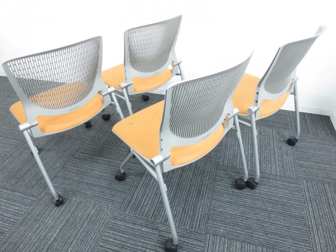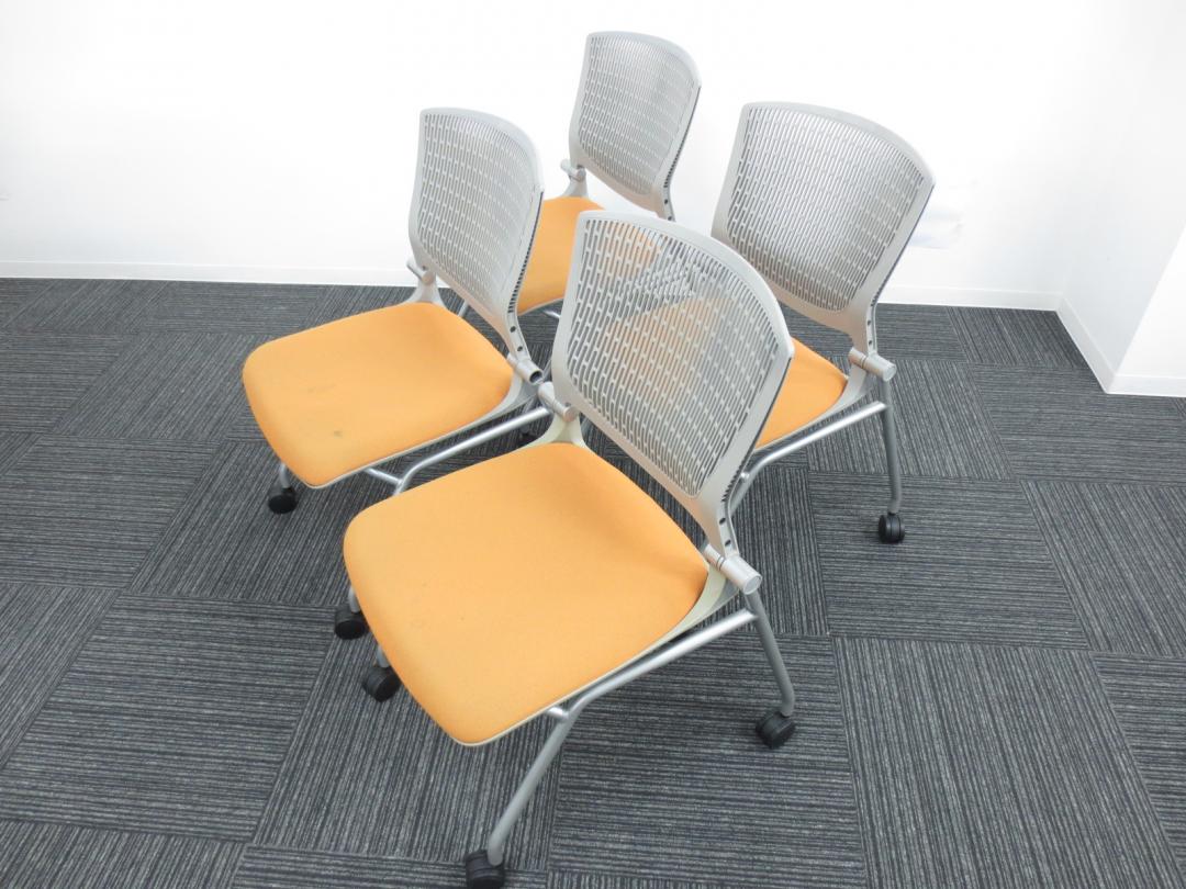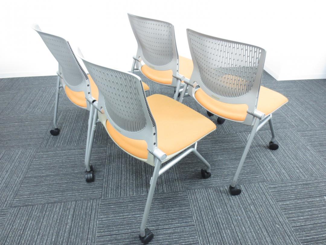 【クリーニング済み】【人気の会議用チェア!!】■グラータ(Grata)チェア ■オカムラ製 ■オレンジカラー ■ネスティングタイプ ■キャスター付き【相模原・町田店】サーキュラーバリューCO2削減量の算出について