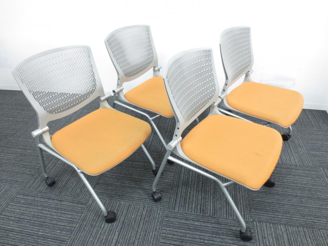 【クリーニング済み】【4脚セット】【人気会議用チェア!!】■グラータチェア ■オカムラ製 ■オレンジカラー ■ネスティングタイプ ■キャスター付き【相模原・町田店】サーキュラーバリューCO2削減量の算出について