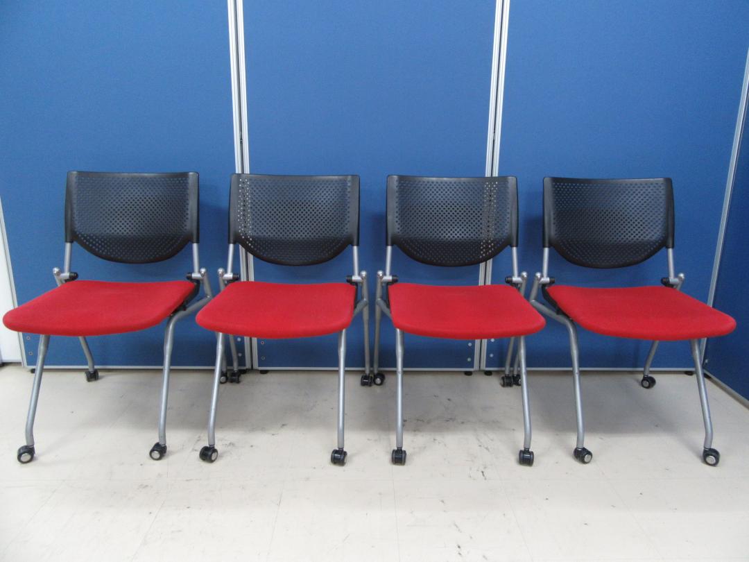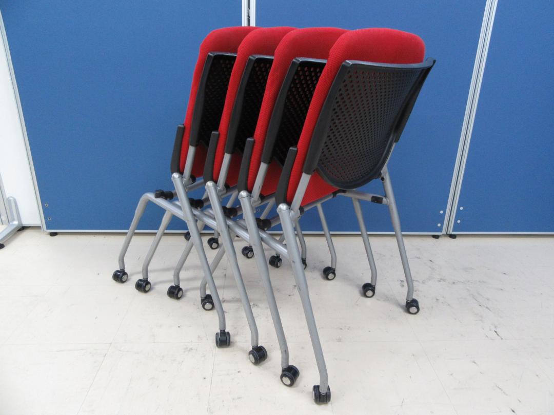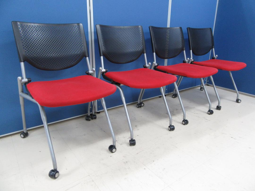 【4脚セットで1,000円OFF!】プロスタックチェア オカムラ製 温かみのあるレッドカラー■座面のウレタンが少々劣化している為、お安くご案内させて頂きます!【おつとめ品】【ネスティングチェア】【中古オフィス家具】- 足立・葛飾店