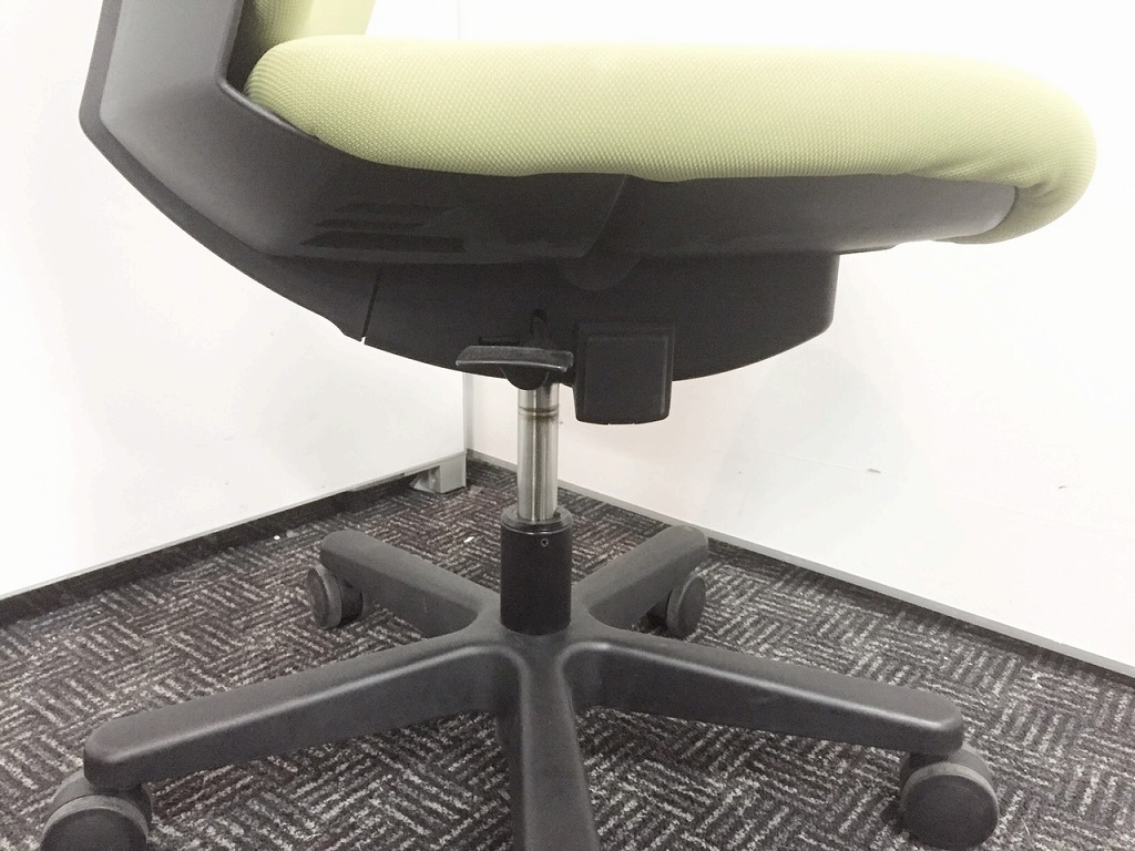 無操作でロッキングの強弱を調節できるトルテRチェアは、操作用のレバーが少ないのが特長。