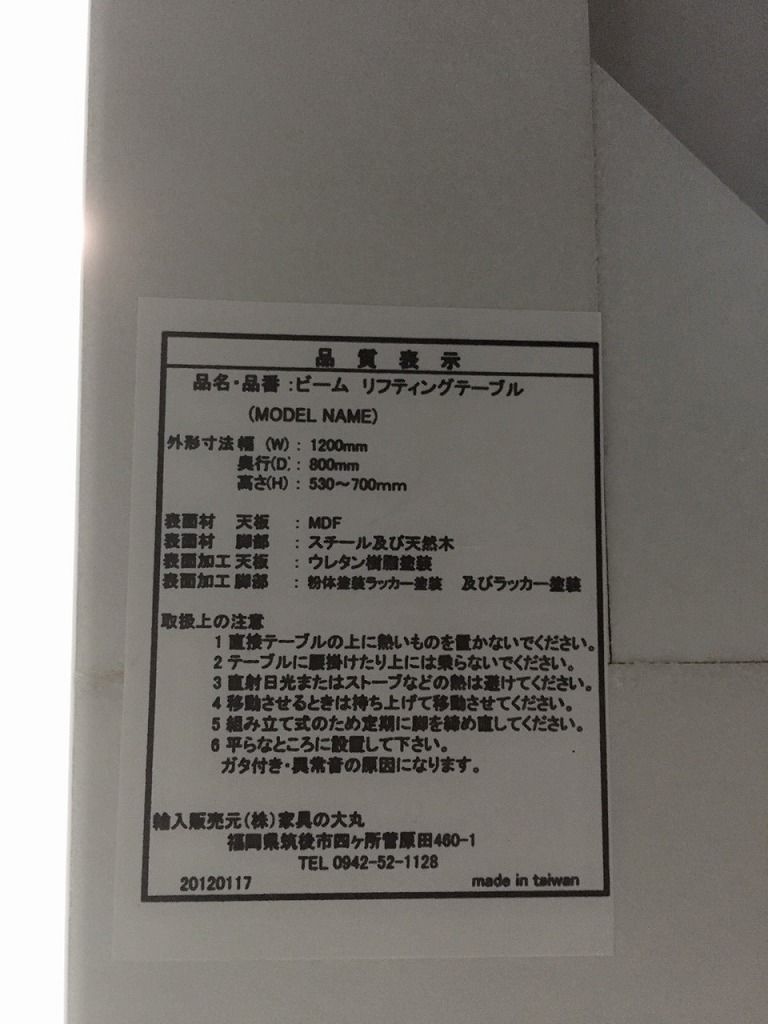 - 一部不具合あり天板歪み、アジャスター無し、キャスター使用不可ようなそのテーブルの本来の効用を果たすための機能以外の一部が使用不可な状態。(例、キャスターロッ ク機能使用不可、棚板無し等がある。)