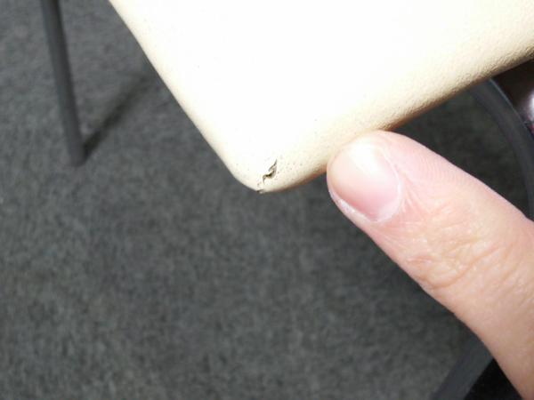 - あり黄ばみ・変色が広い範囲にうっすらある、または濃い黄ばみ・変色が一部ある。(例、座面・背もたれ、脚部等にある。)