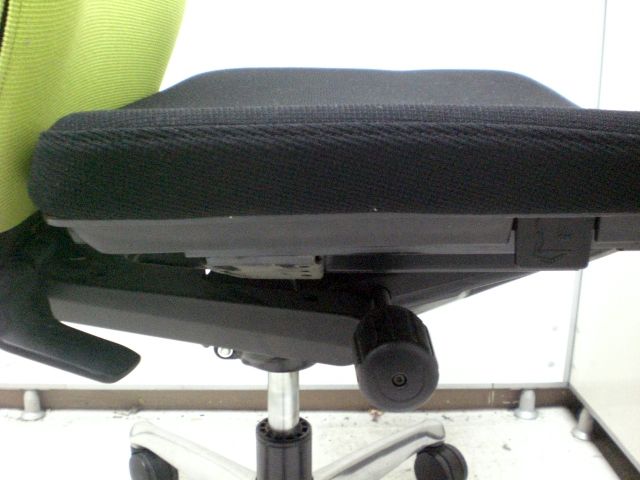 - 深く座りたい人、浅く座りたい人など利用者にあった形で座面が前後45mm範囲で調節できるので、腰の負担を軽減します。