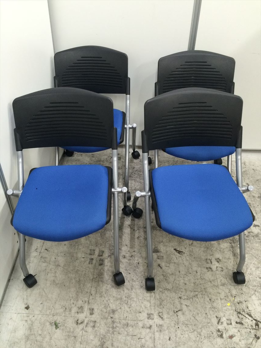 【セット商品】【4脚セット】鮮やかなブルー色スタッキングチェア- 名古屋本店