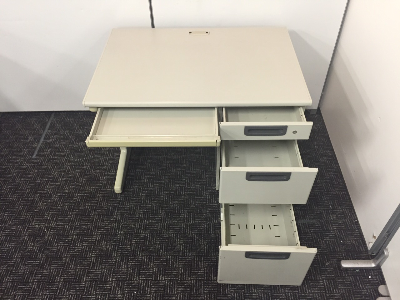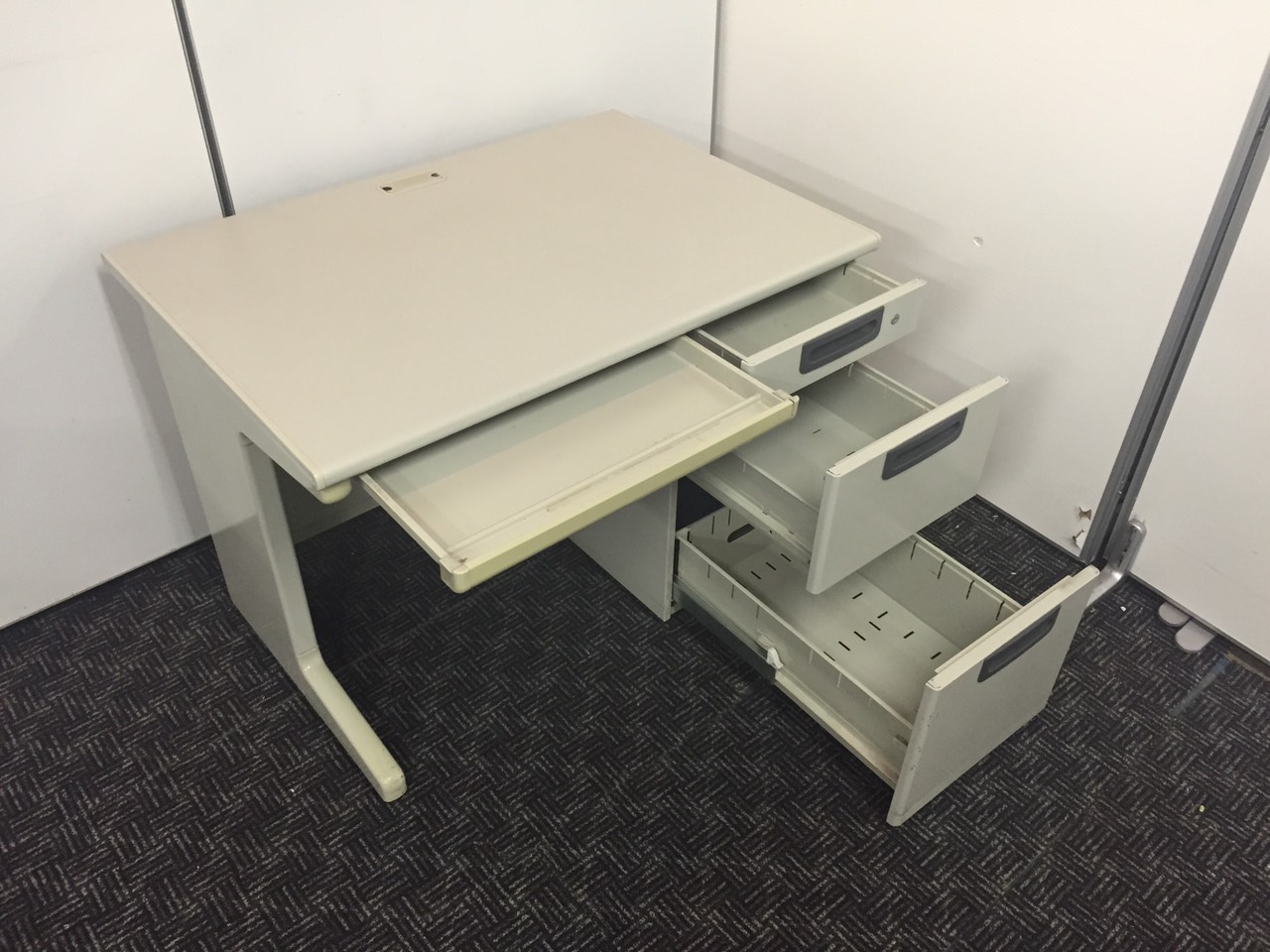 ※奥行要確認!【収納とワークスペースの両立!横幅1000㎜サイズ!】■プラス(PLUS) LAデスクシリーズ 片袖机 W1000×D600㎜ ■ニューグレー ■シリンダー錠【2508】弊社使用欄【A01031273】